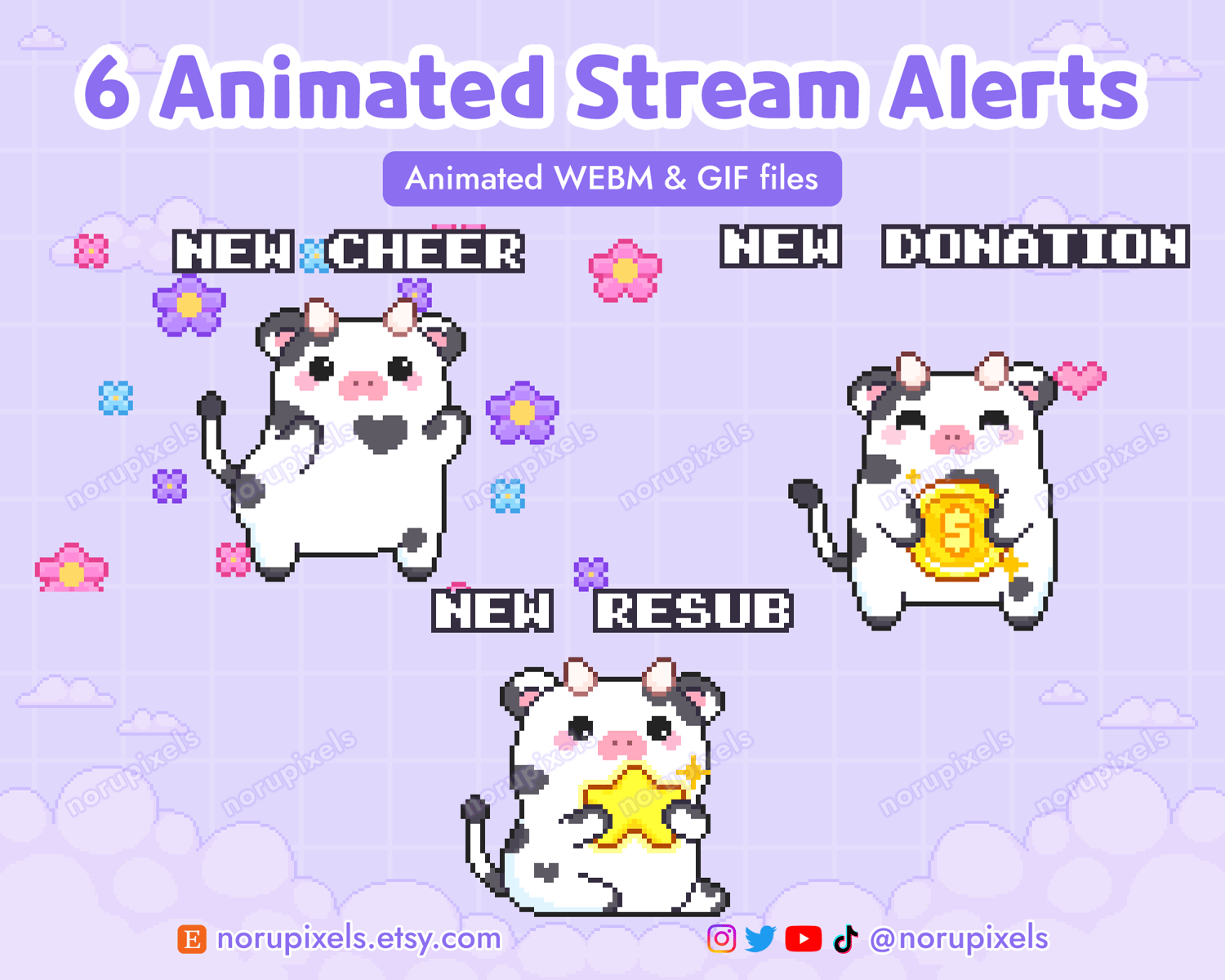 6 Animated Cow Stream Alerts Pack