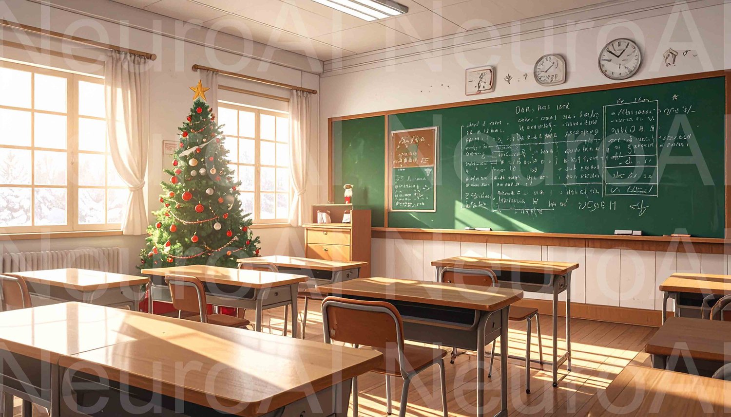 Festive classroom with Christmas tree magic