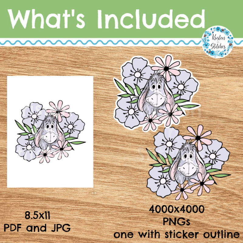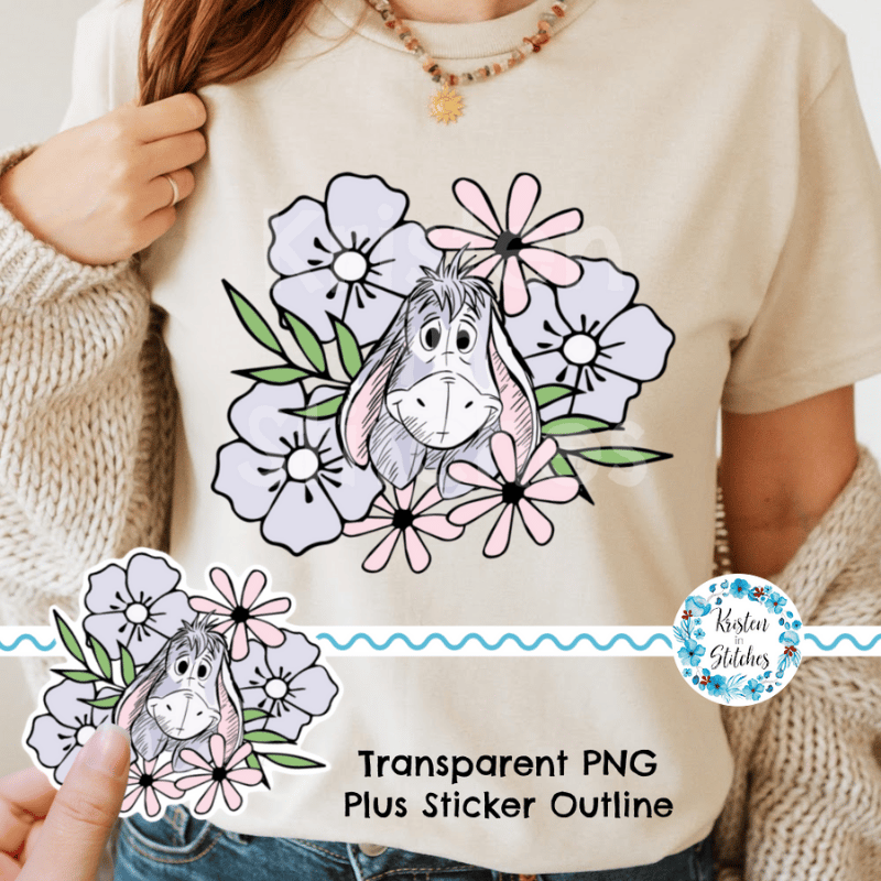Eeyore Printable PNG PDF Sticker or DTF Iron On Transfer Transparent File, DIY Print & Cut, Shirt Applique, Classic Winnie the Pooh
