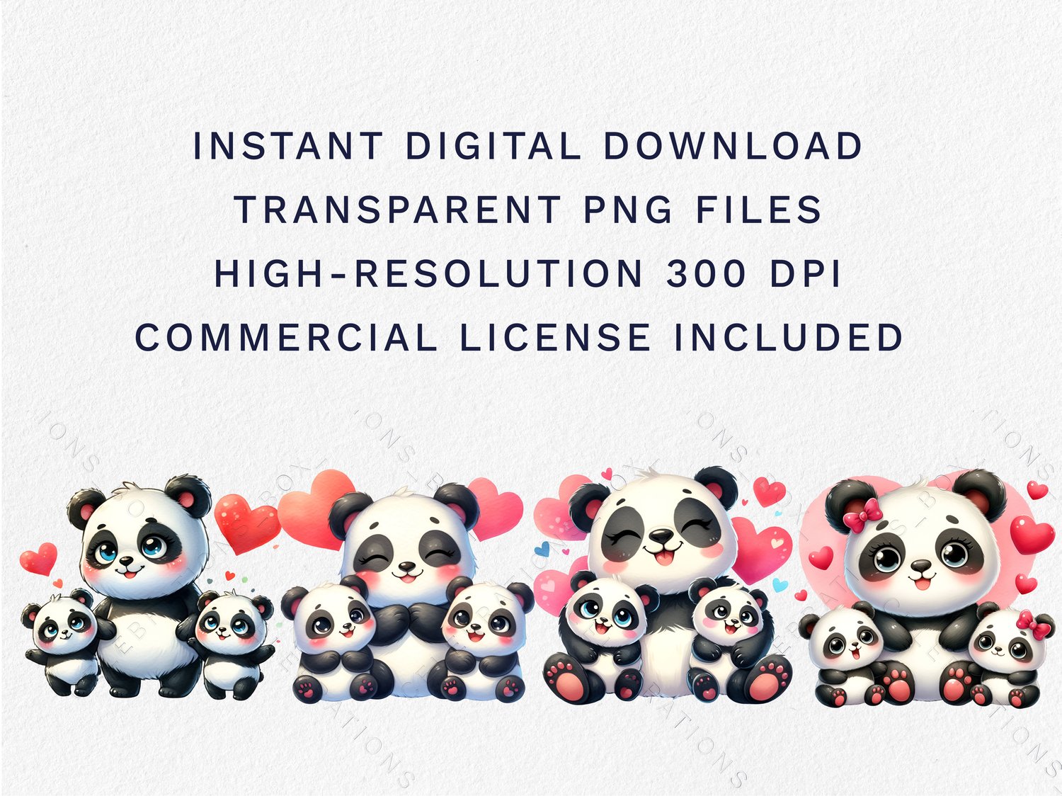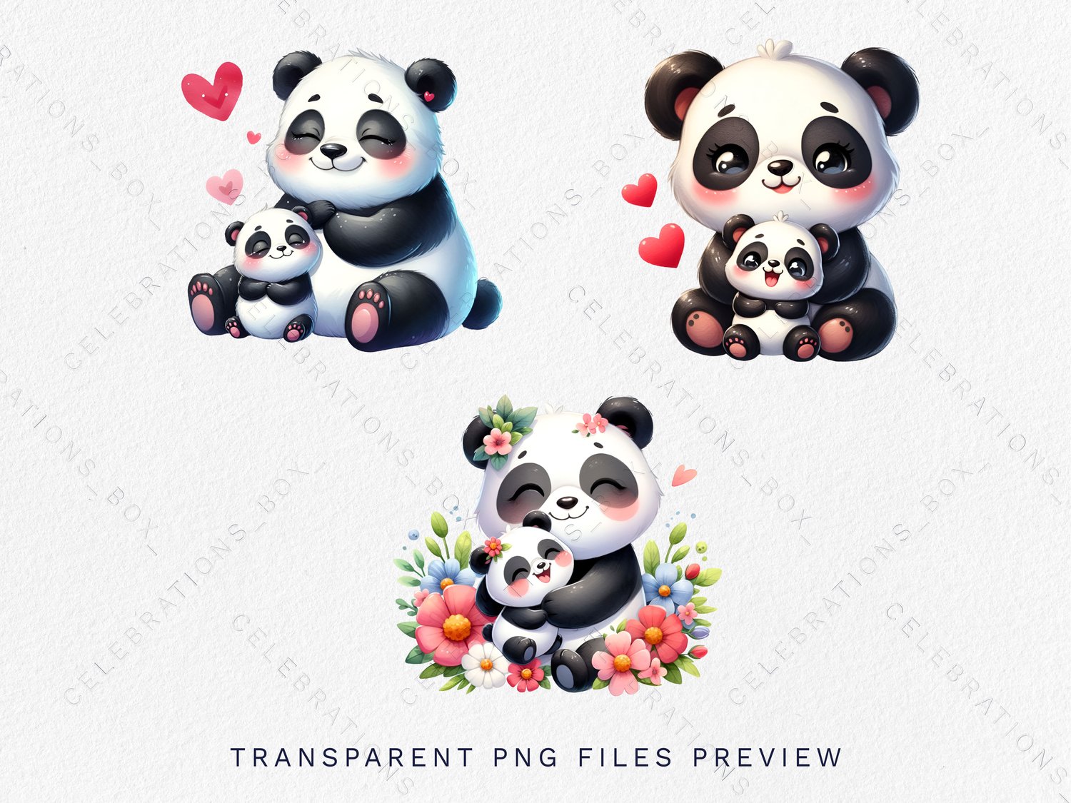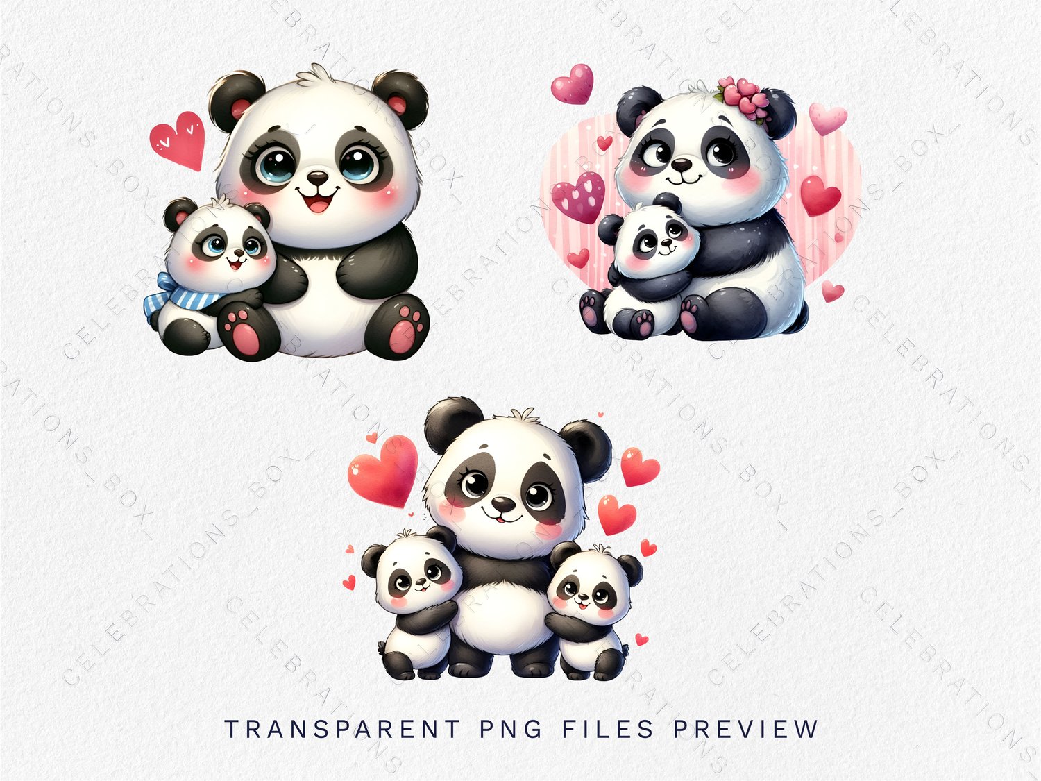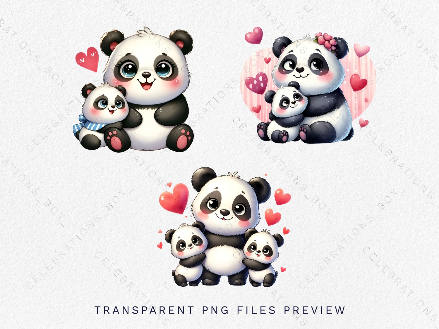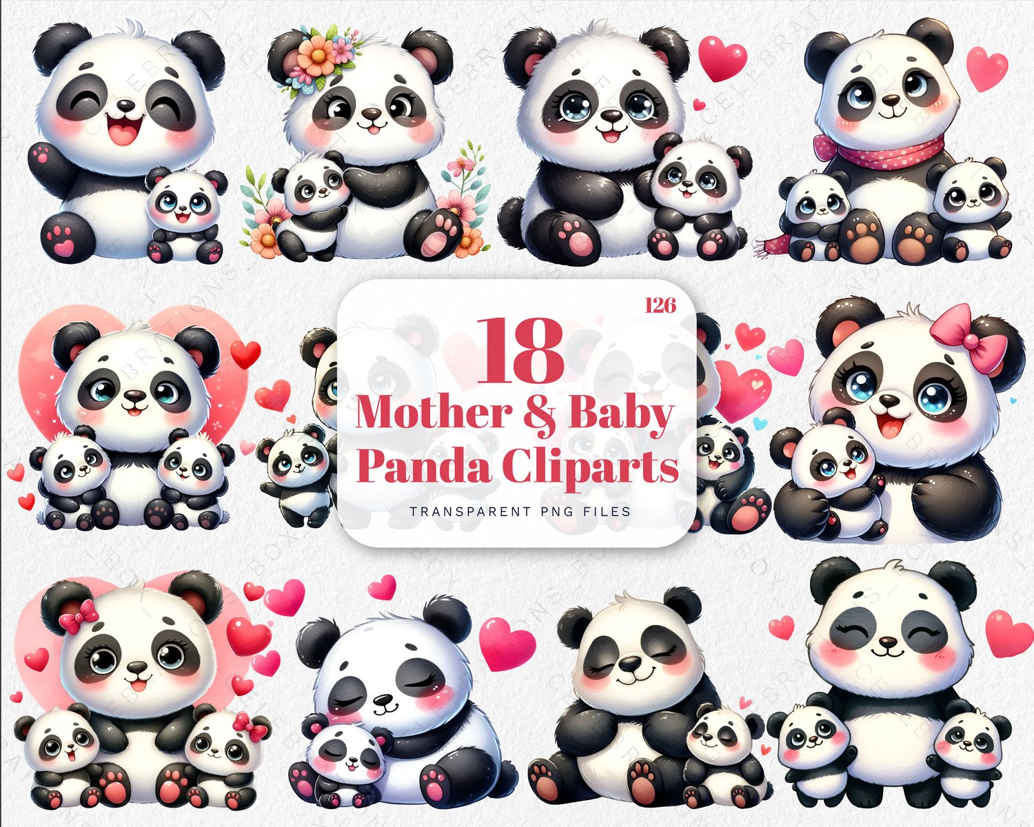 Watercolor Panda Mom And Panda Baby Clipart Bundle