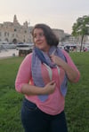 I used Mirasol Nuna for the sample, which is a merino silk blend, but any Sport weight yarn that offers good drape and stitch definition will be fine. The skeins for the yarn are stated to weigh 50g, but they were mostly a little over and I mostly went into that extra few grams, so especially if you’re gauge is slightly different you might feel safer using a yarn that offers skeins/balls in a 100 grams weight.
