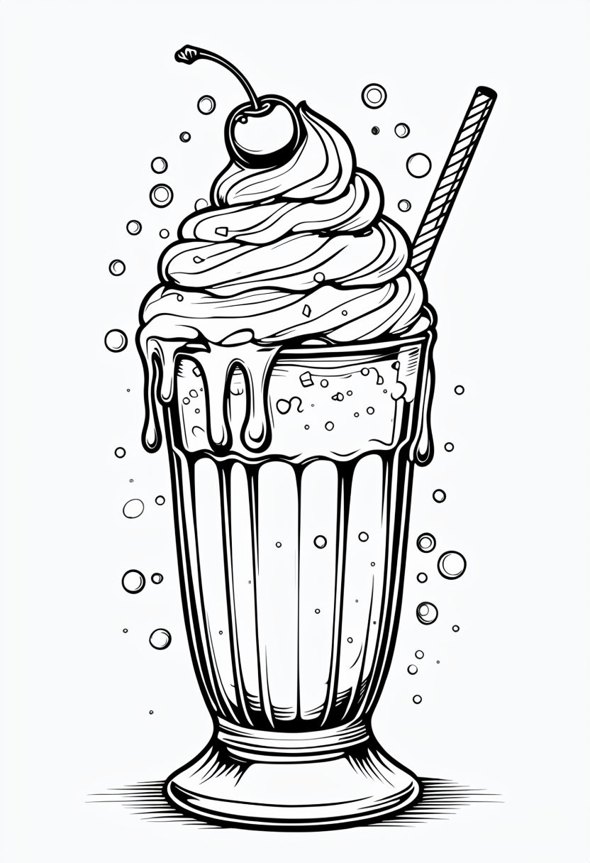 - Indulge in a deliciously whimsical scene featuring a towering milkshake adorned with sprinkles and a cheerful straw. Perfect for adding a burst of color to your day, this page brings a touch of sweetness and fun.