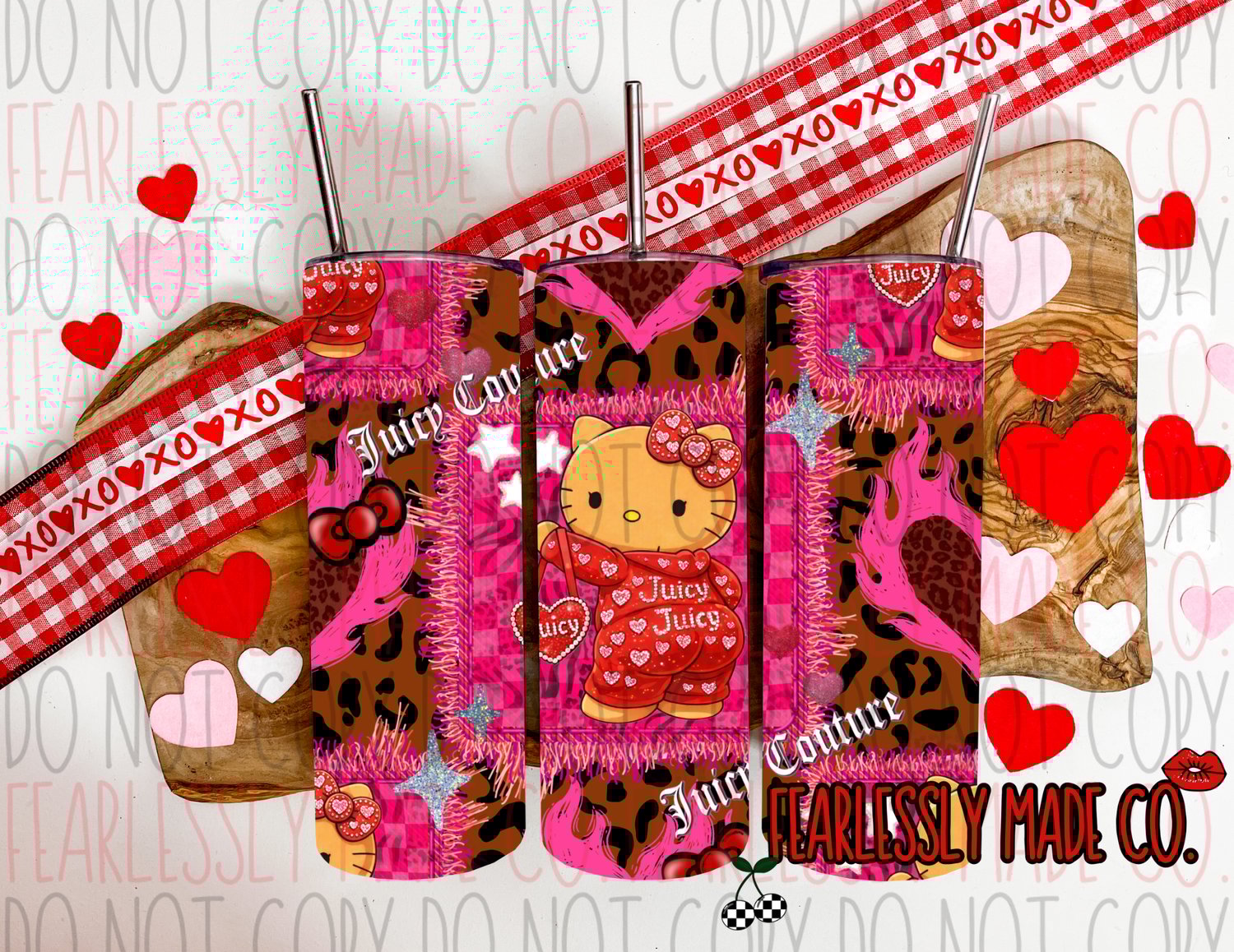 It holds 20 oz of your favorite beverage; has a plastic lid and comes with a reusable straw.