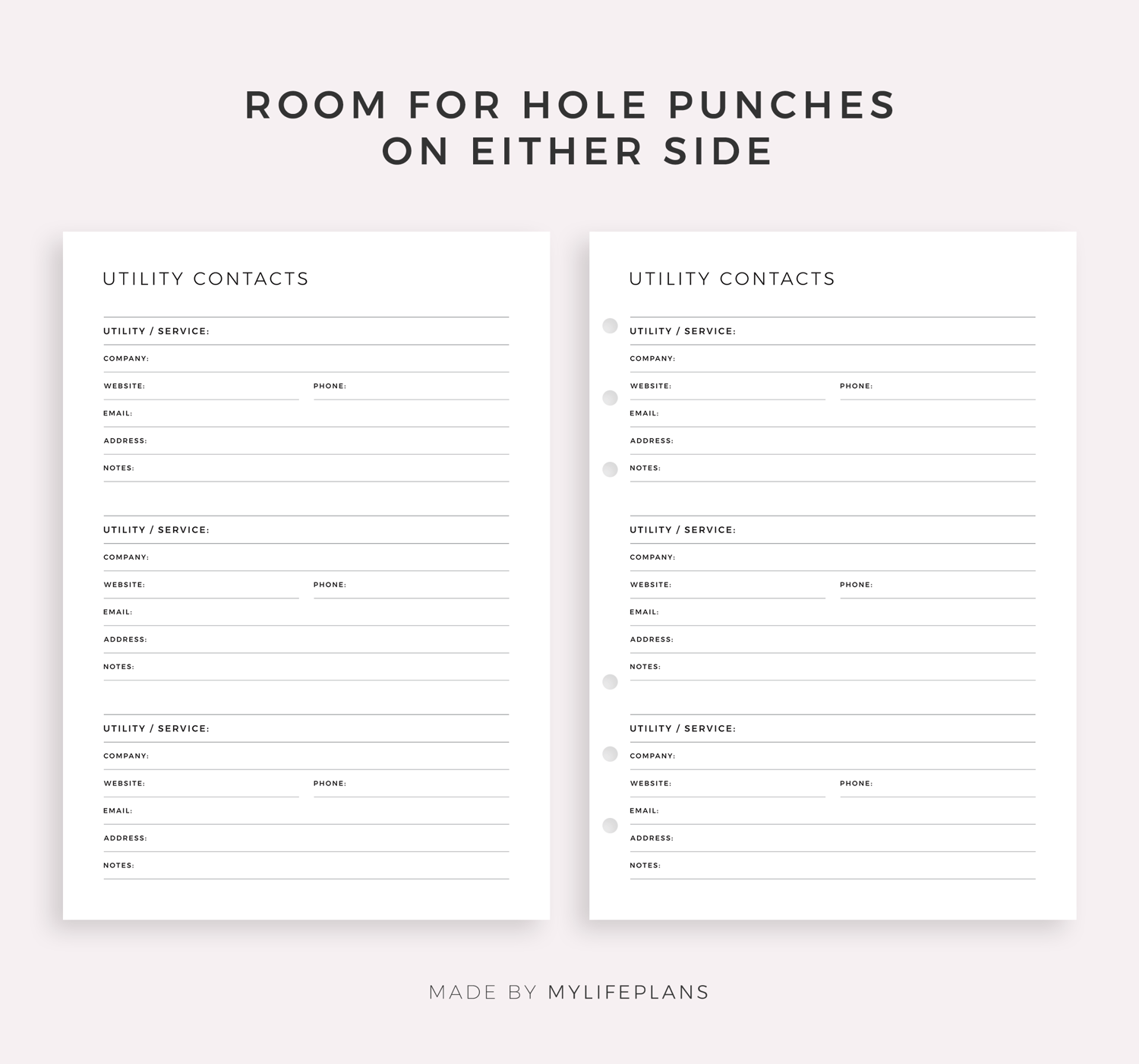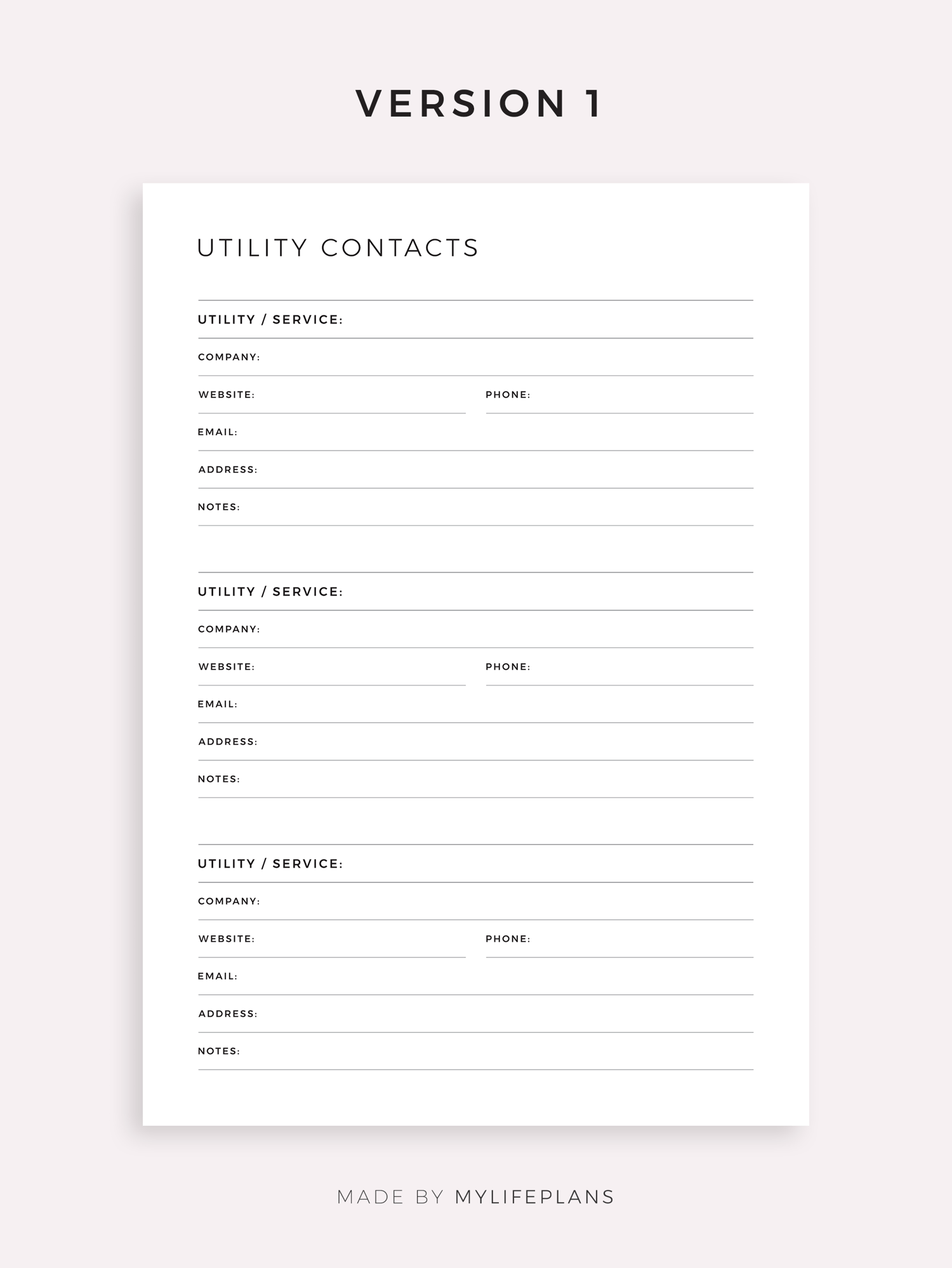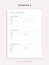 Utility Contacts Printable Template for Home / Business, Service Provider Contact List