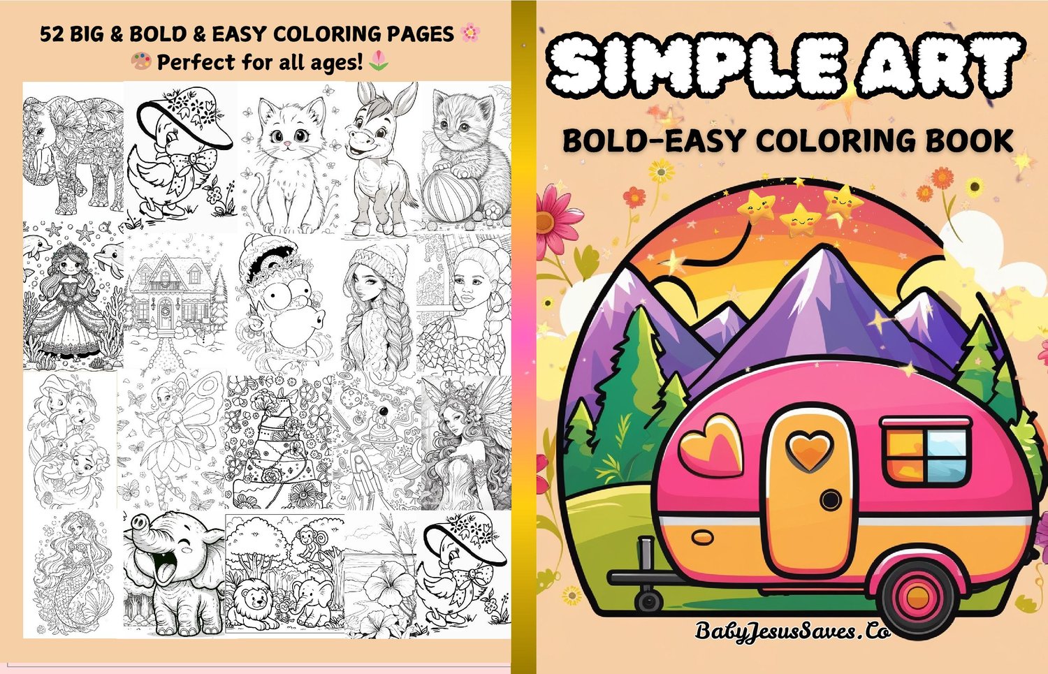 Discover 52 beautifully illustrated pages of bold, easy, and fun designs perfect for colorists of all ages. ✨🖌️ This downloadable printable coloring book is ideal for relaxation, stress relief, and hours of creative enjoyment.