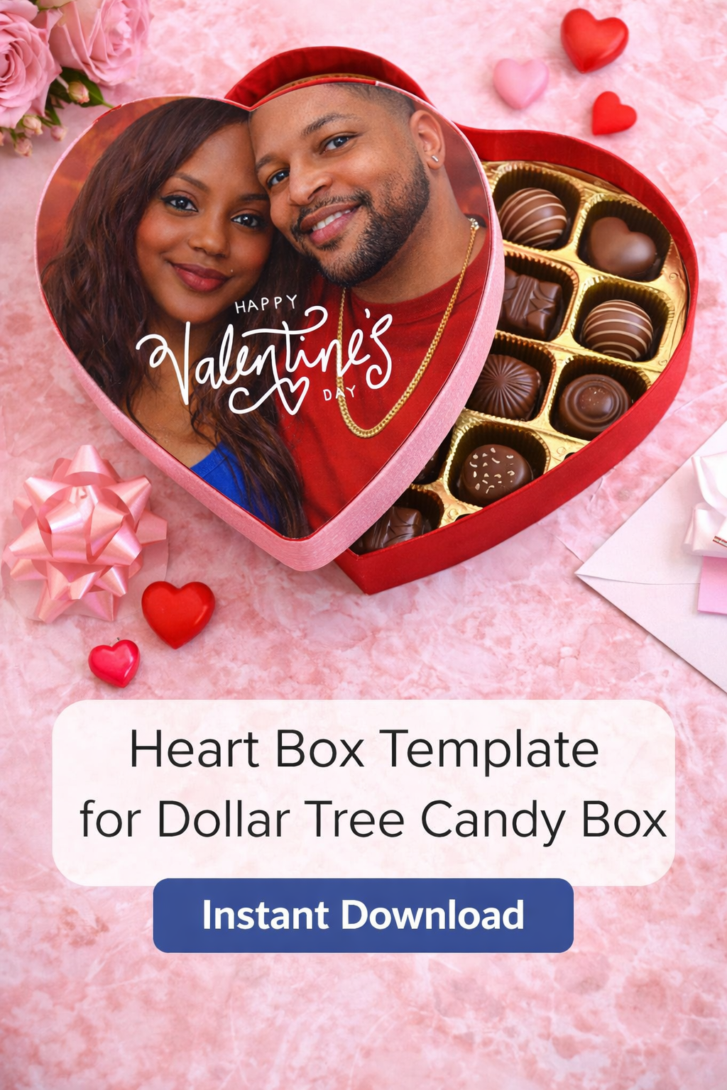 This digital template allows you to transform an inexpensive candy box into a custom keepsake using photos, names, or Valentine’s messages. Perfect for gifts, small businesses, party favors, or DIY Valentine projects.