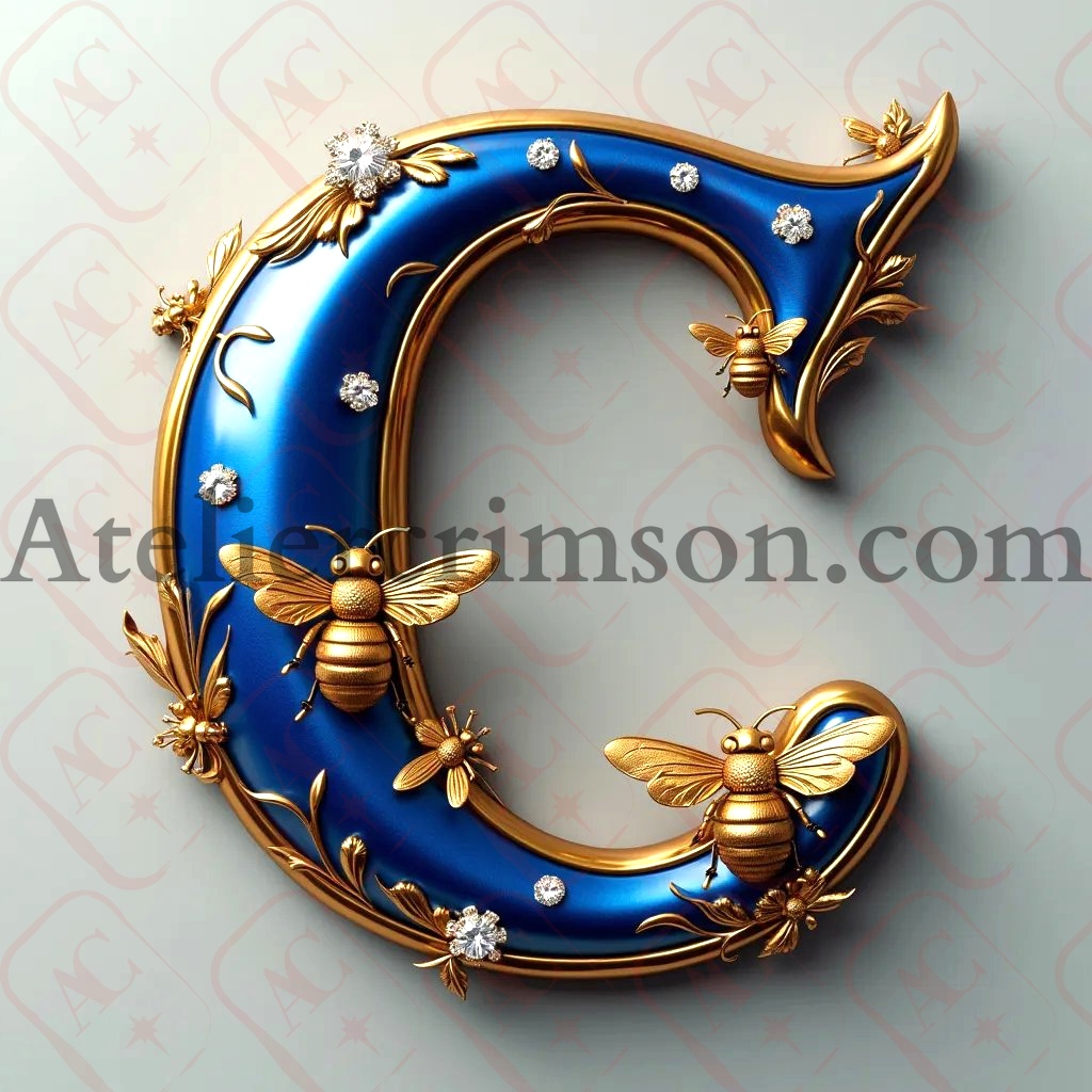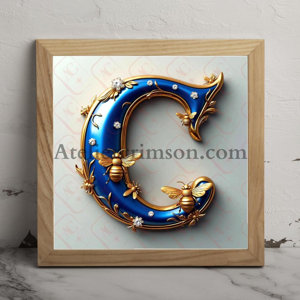The letter C royal blue bees Download Now this high quality AI-generated image, perfect for adding a touch of tranquility and creativity to any space.
