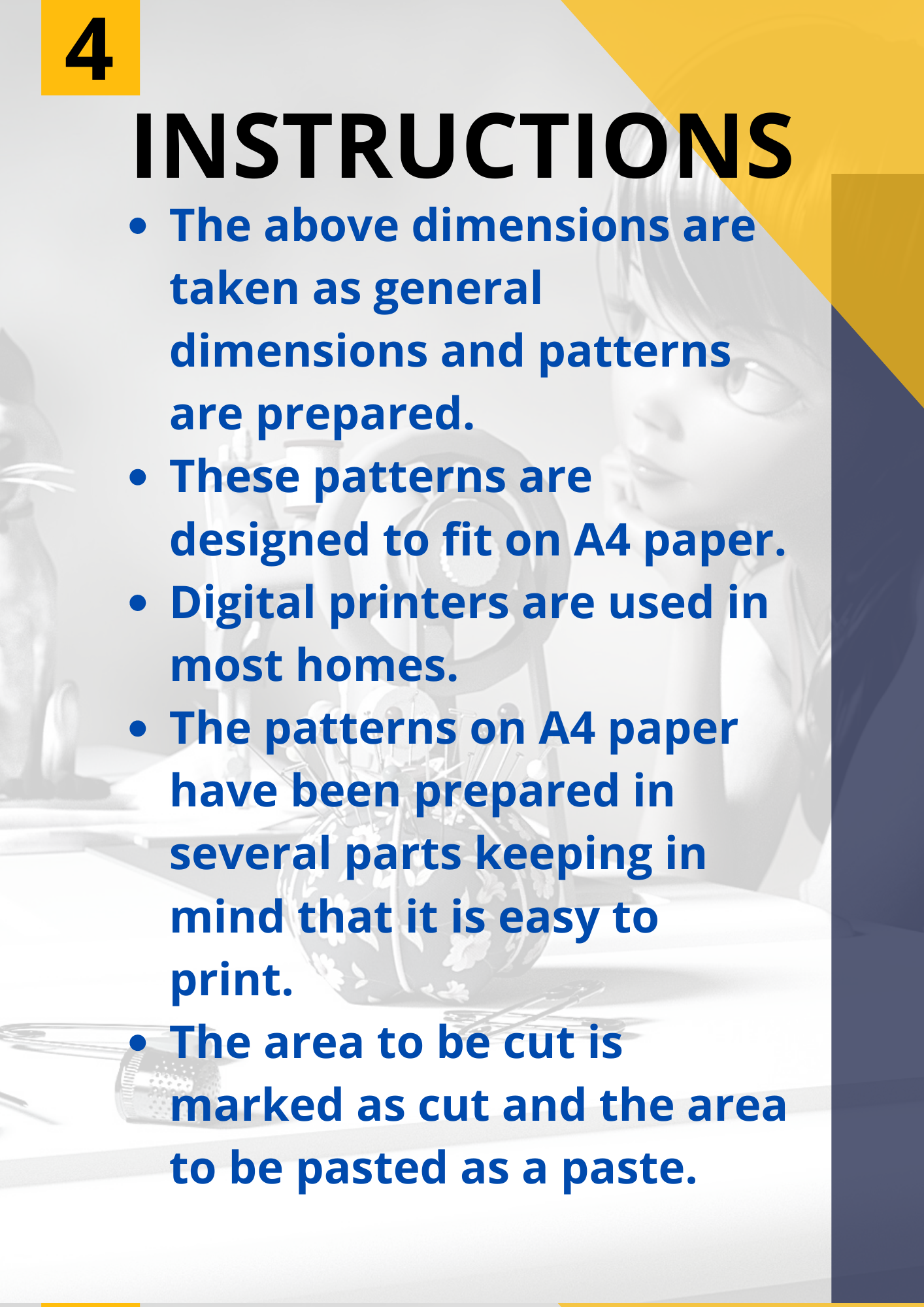 The patterns on a4 paper have been prepared in several parts keeping in mind that it is easy to print.