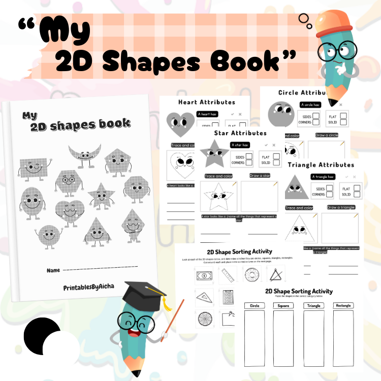 Whether you're a parent, teacher, or homeschooler, this 2D shapes printable workbook is a must-have in your early education toolkit. It covers all the key 2D geometric shapes—circle, square, triangle, rectangle, heart, star, and more!