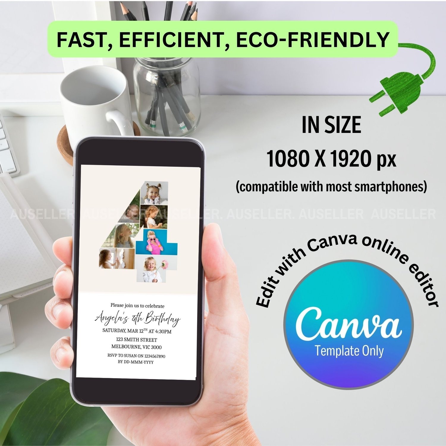 4th Birthday Photo Collage Editable Invitation Template