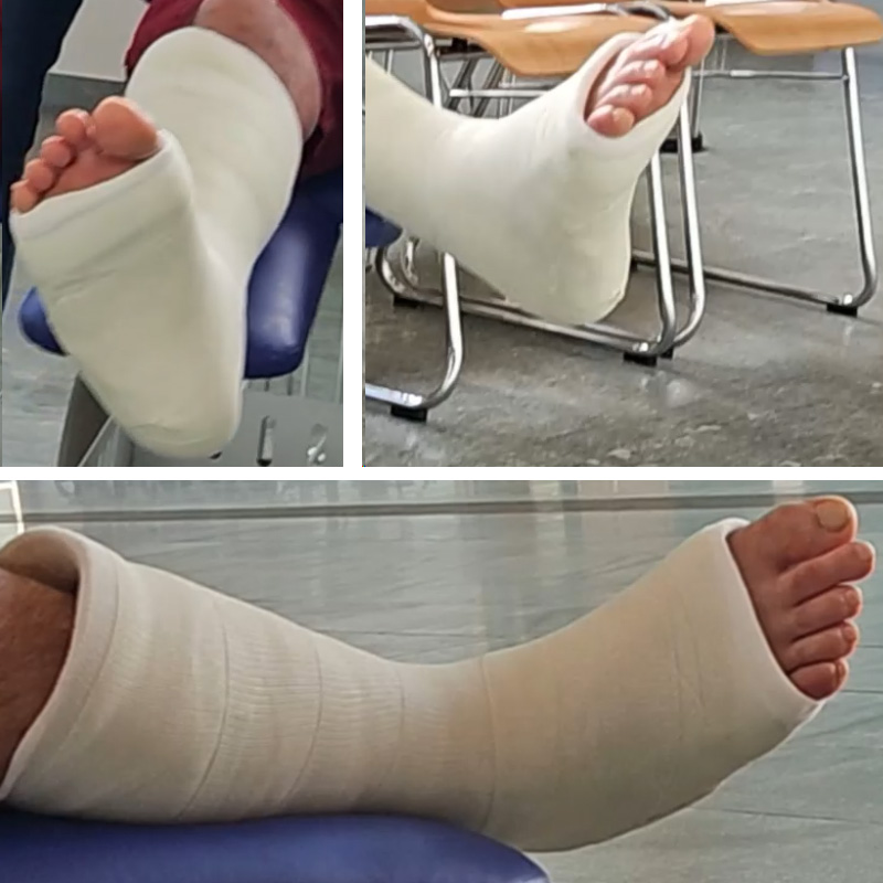 This time the cast doesn't have a toe plate, so we can get a good look at his very attractive toes not only from the top, but also from below.