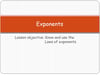 PowerPoint presentation, 17 slides, Explaining how to use the laws of exponents to simplify expressions.