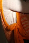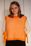 Le pull sans manches sorbet est un vêtement texturé et multicolore à la coupe carrée qui se