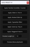 All animations are customizable with your chosen duration β just type in the time, select your layer, and hit apply.