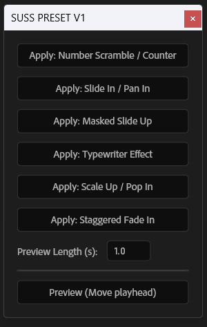 The script will run instantly β‘ and youβll see the custom panel or functions inside After Effects.