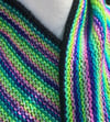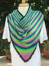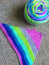 La Luce (“The Light” in Italian) is a triangle-shaped shawlette in vibrant fingering weight yarn. I used LunaPurlYarns self-striping sock yarn in the Butterfly Nebula colorway. Electric eye-popping colors with a bit of grey tossed in for calm. Love them. Looking at the skein makes me so happy. This shawlette features three options for the edging. In order of difficulty: a traditional bind-off, an attached I-cord edging using a contrasting color, or a beaded edging in a contrasting color with a picot bind-off. As my friend, Ellen says, “It’s all about the options”. By the way, the name “Ellen” means “bright, shining light”. And she sure is.
