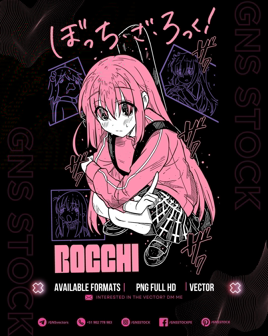 Anime Vector – Bocchi | Bocchi the Rock! | Design for DTF, Sublimation, T-Shirts | Files: CDR, PDF, PNG, SVG