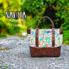The outside has a front zipper pocket, a side snap pocket and a side water bottle pocket. Inside you will find a zipper pocket, a snap pocket, a divided pocket and a side pocket. In all, that is seven pockets! Nakota may be made in fabric, vinyl, or a combination. The shoulder strap is detachable.