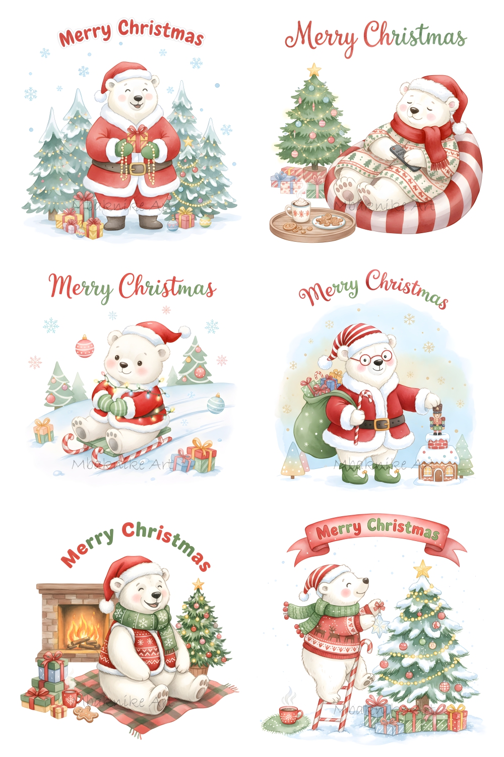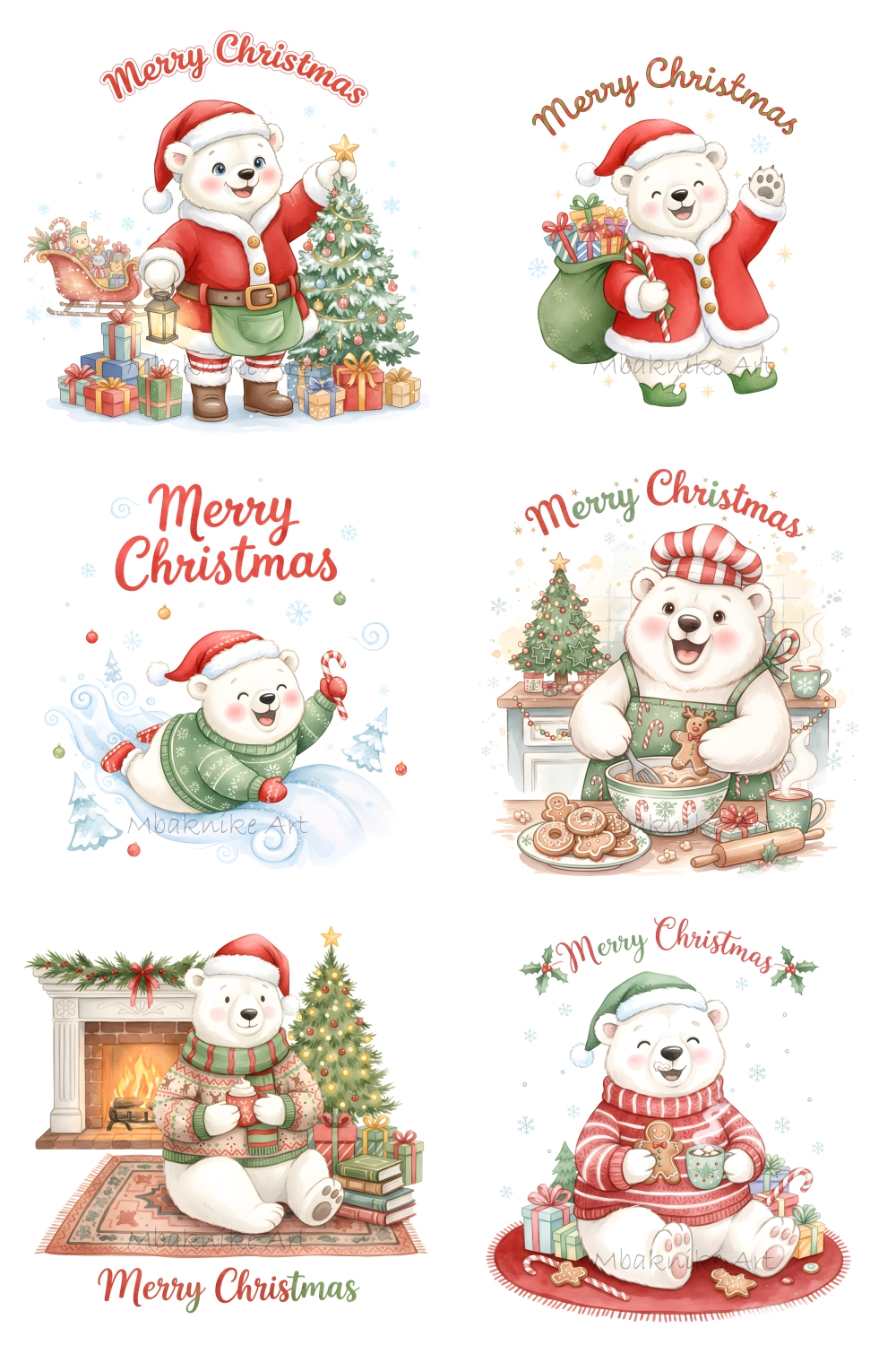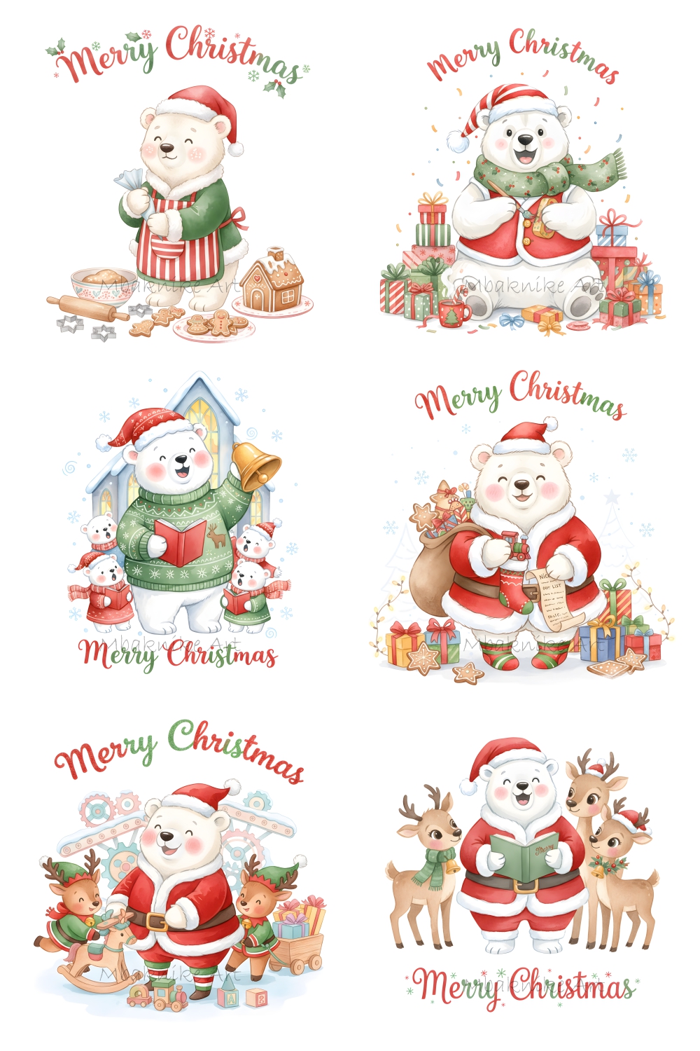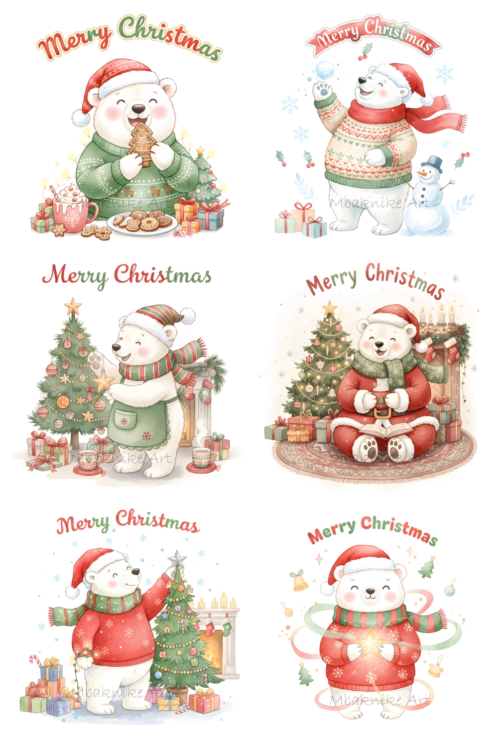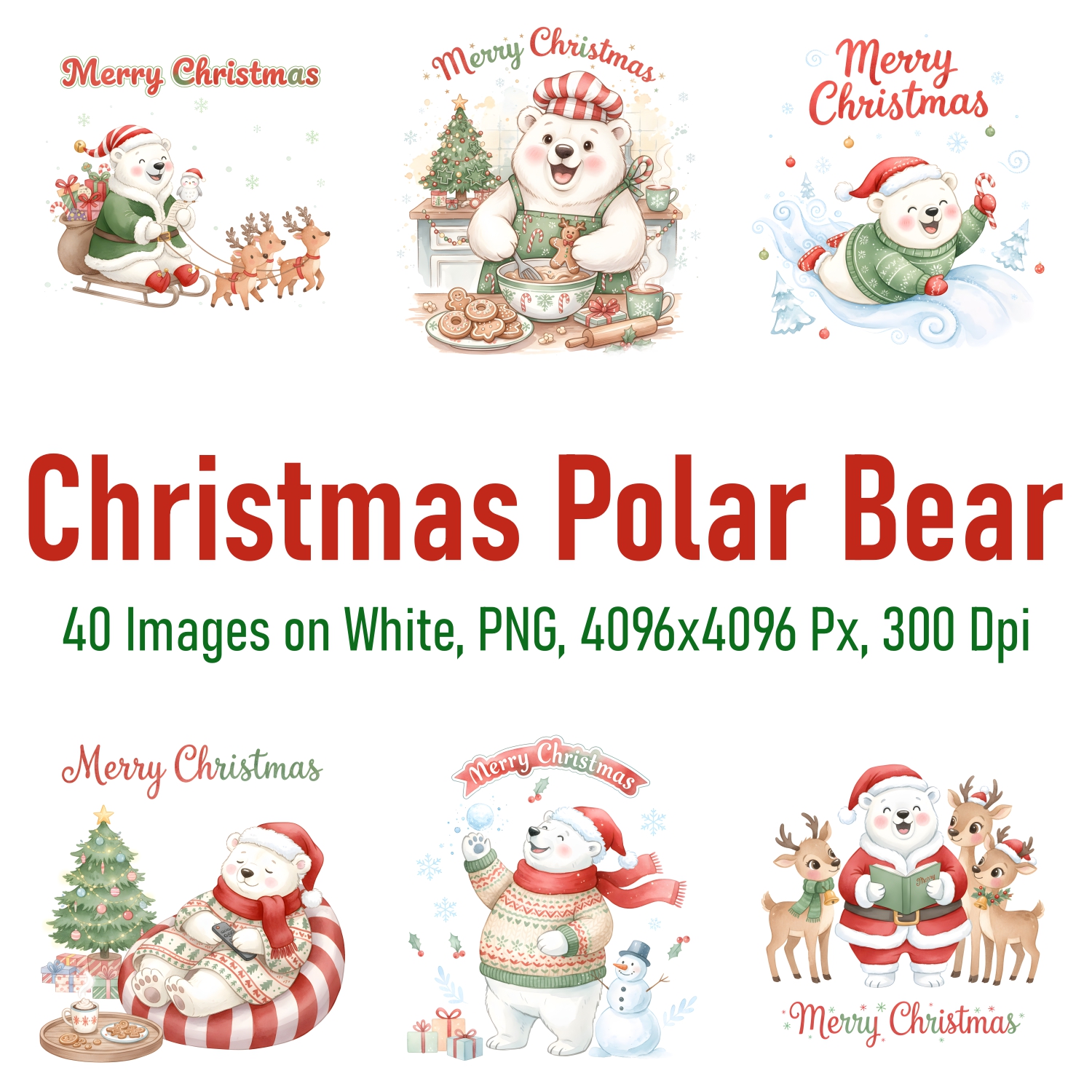 Transform your creative projects with our "Christmas Polar Bear Clipart" collection! This digital pack includes 20 unique and whimsical images, each in PNG format with a white background at a high resolution of 300 dpi and 4096x4096 px.