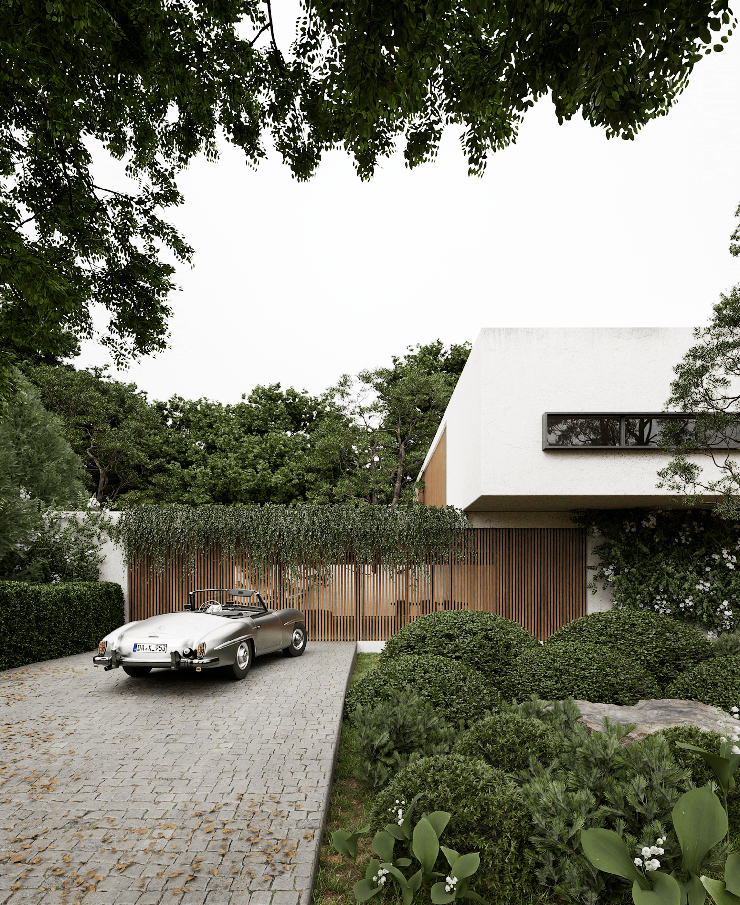 A beautiful architecture concept by Zamitt Studio, covered with nature vegetation—learn about megascans and maxtree assets, custom trunks and trees.