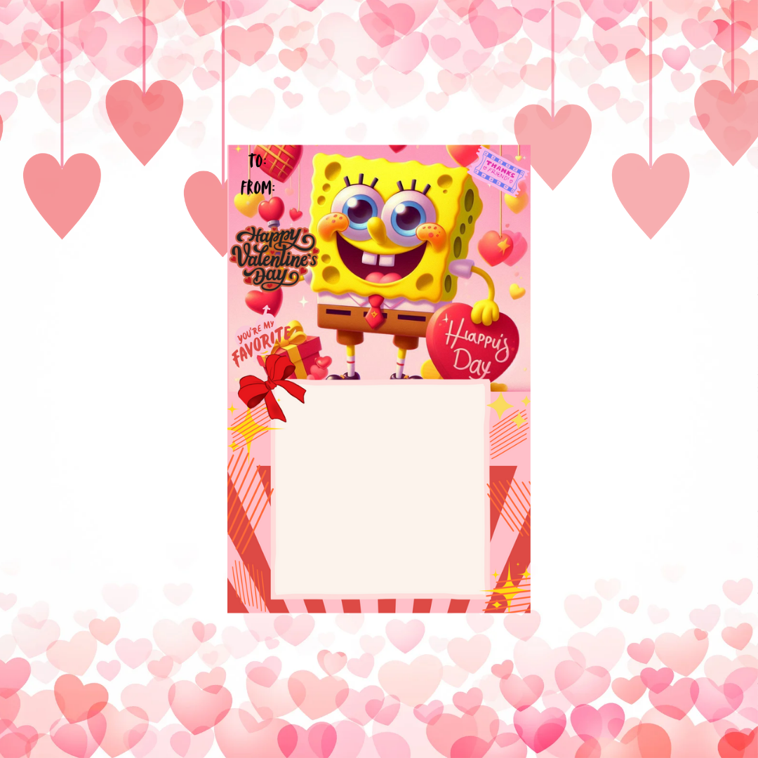 Kids Vday templates consist of two characters which are spongebob and hello kitty.
