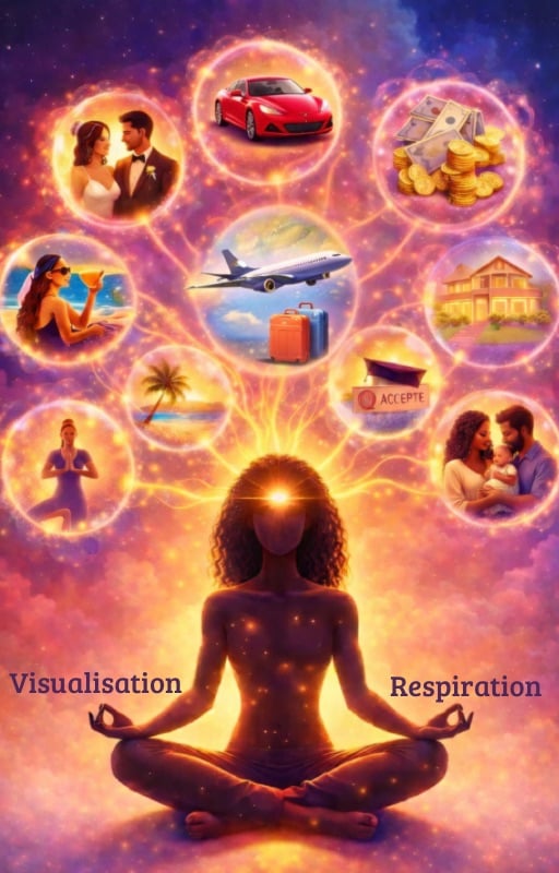 La respiration associée à la visualisation permet de poser une intention claire et d’agir en cohérence avec ce que tu souhaites vivre, attirer a toi.