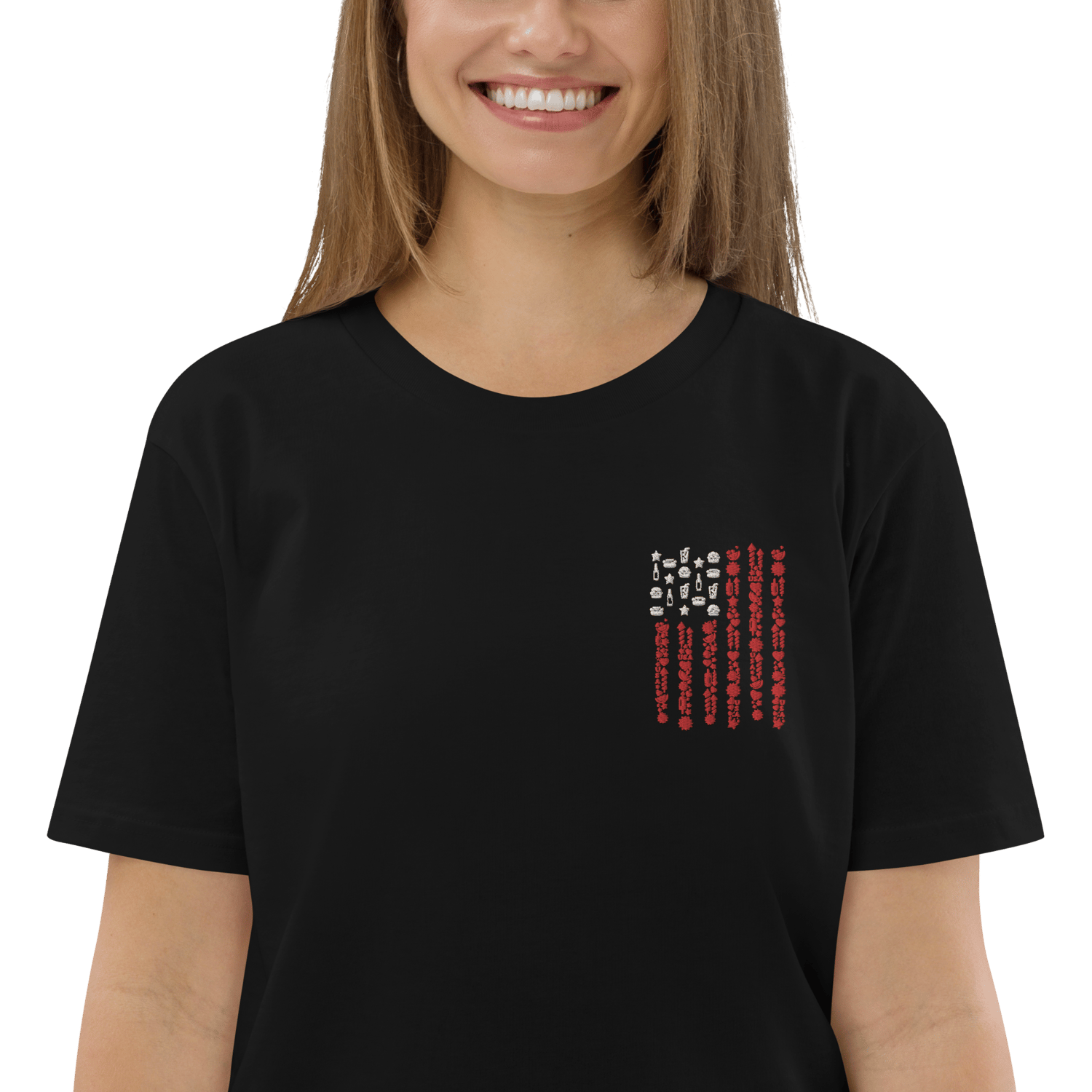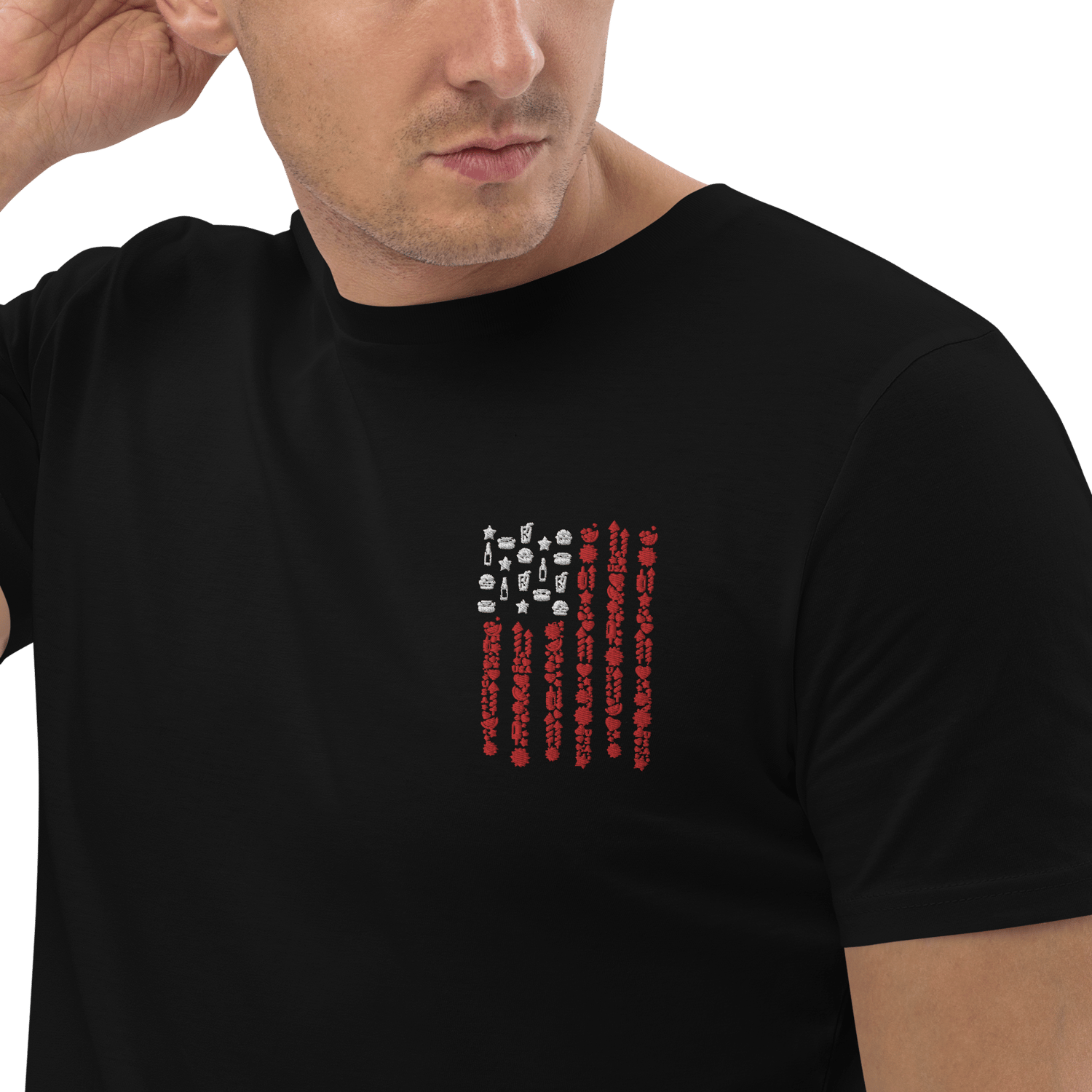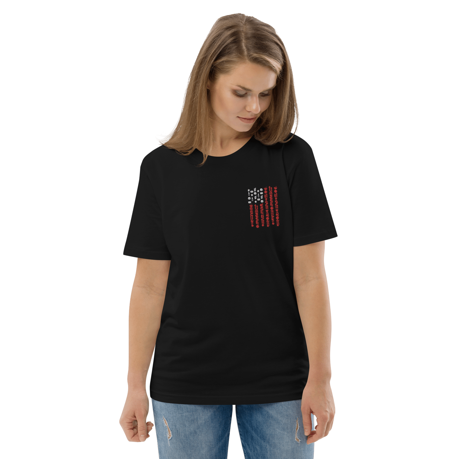Embroidered American Flag Unisex Eco-Friendly 100% Organic Cotton T-Shirt