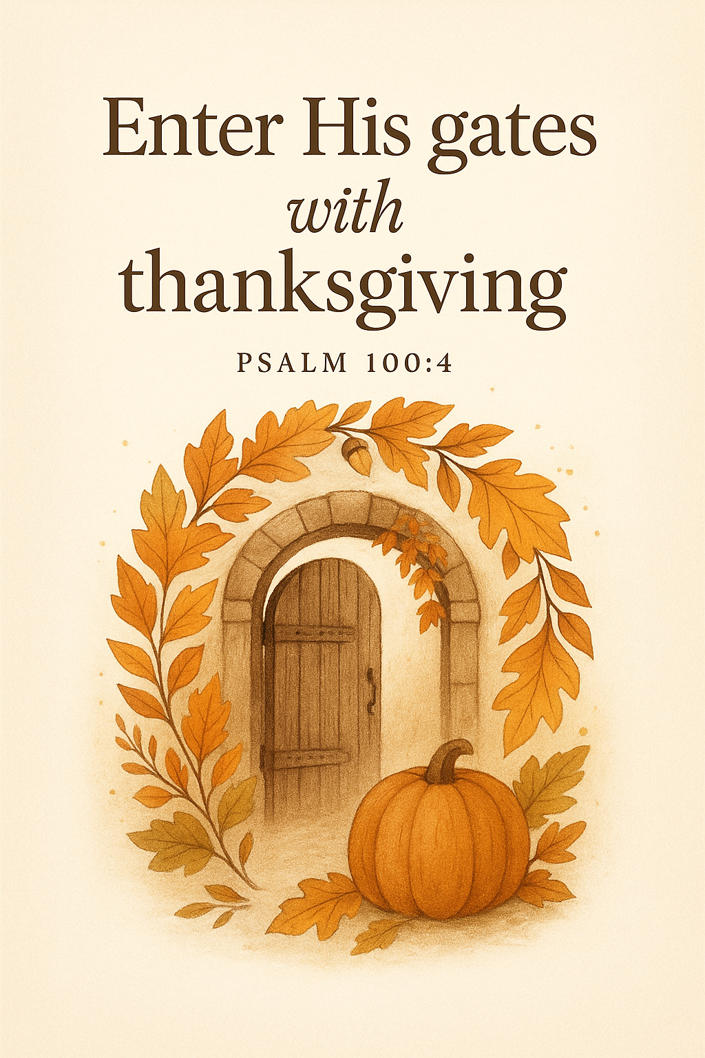 🚪 Enter His Gates with Thanksgiving – Psalm 100:4 Autumn Doorway Poster