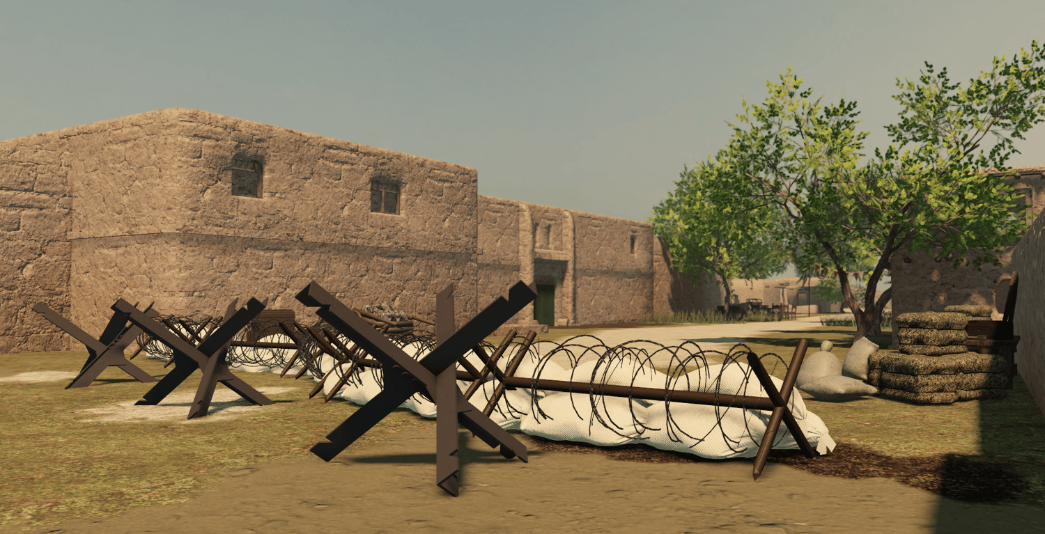 Lotus Citadel is perched atop rolling hills in Asia, overlooking a tranquil village and a nearby military camp. Both the village buildings and military barracks include interiors, offering a closer look into daily life in this strategic location.