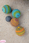 This crocheted set softens the game, making it safe to share with the whole family, or to allow kids to play without adult supervision. These bocce balls are regulation size and very nearly regulation weight as well.