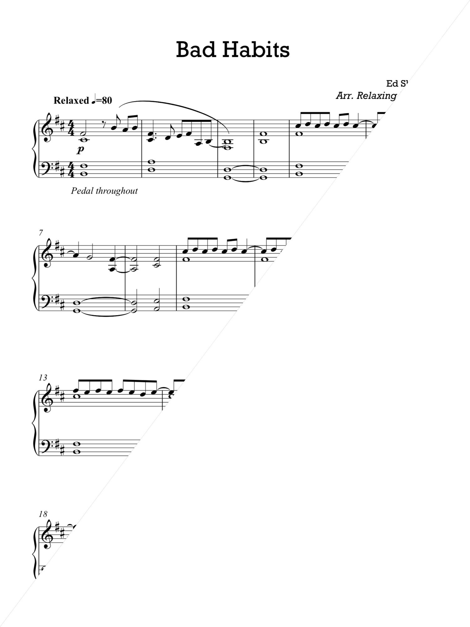 A relaxing cover of Ed Sheeran's 'Bad Habits'. Suitable for all levels of pianist.