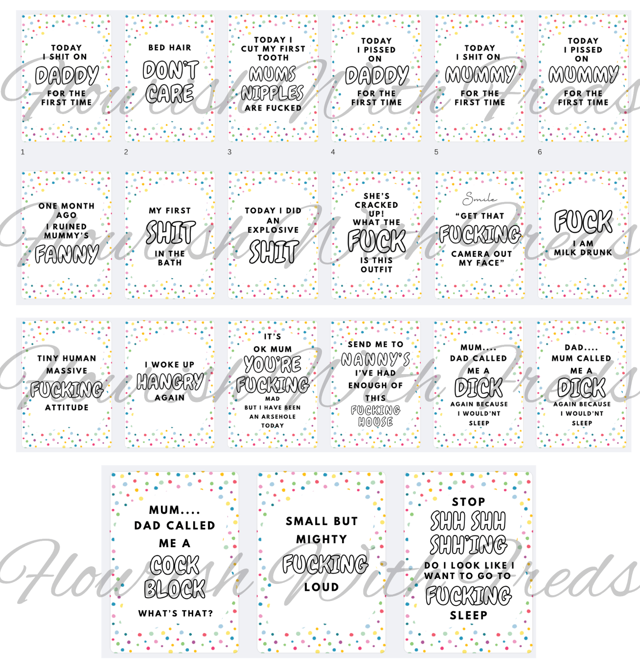 21 DIFFERENT Humour Milestone / Prop Cards! not for the easily offended