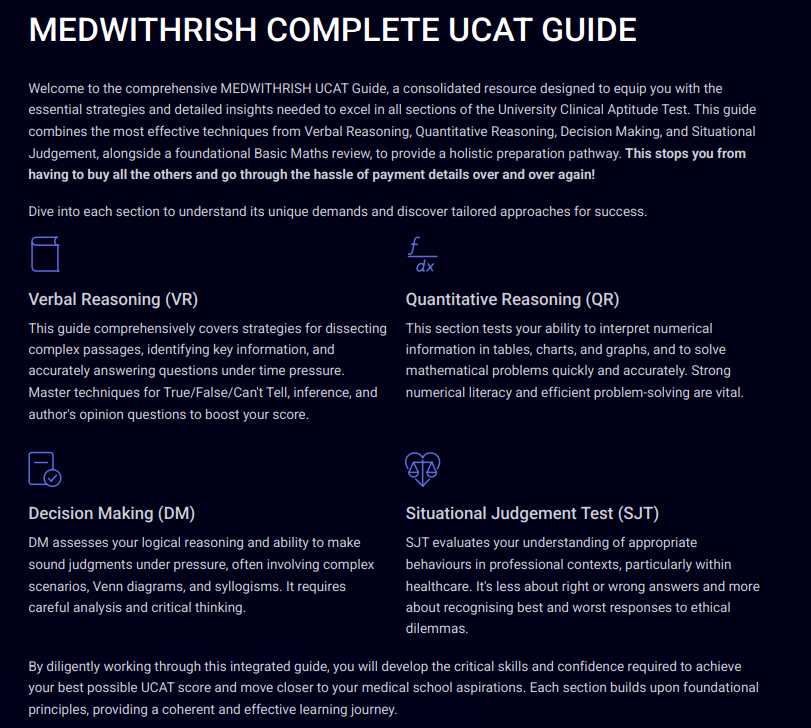 Stop wasting time searching! Get every UCAT section covered with this complete, combined PDF bundle. These aren't just any notes—they're the distilled wisdom of an experienced UCAT tutor who knows the exam inside and out, with resources on TikTok, @medwithrish.