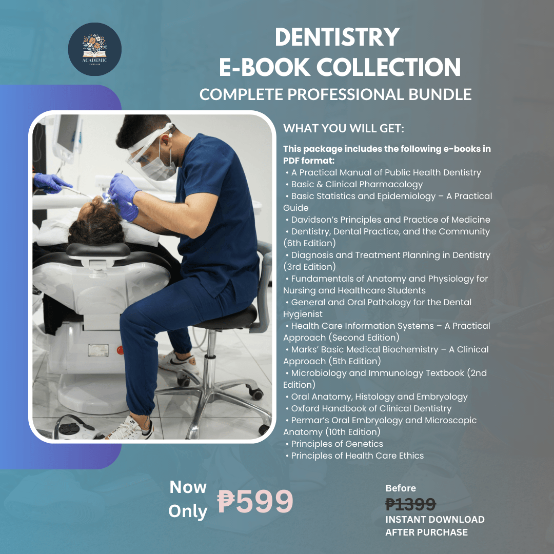 The Dentistry Course Collection E-Books is a complete digital library designed for dentistry students, dental hygiene students, dental assistants, and healthcare professionals who want to build strong academic knowledge and clinical skills.