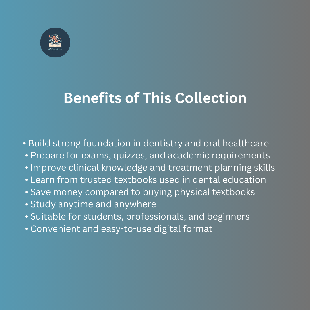 Whether you are studying dentistry, preparing for exams, or improving your professional knowledge, this collection provides reliable and comprehensive learning resources used in dental education worldwide.