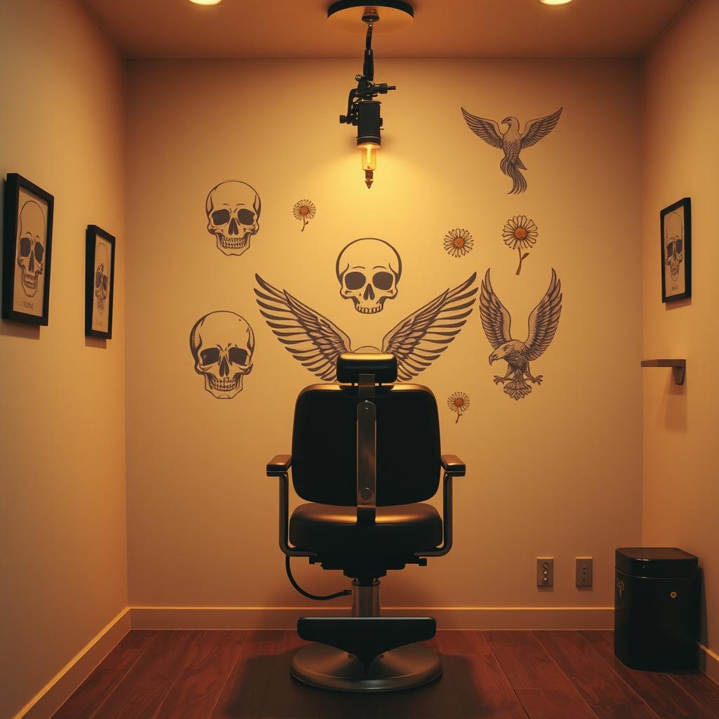 The lyric moves between craving and purpose, capturing the hum of the tattoo machine, the acceptance of pain, and the quiet satisfaction that comes when a story is permanently etched into skin. Images of skulls, flags, military symbols, and memorials speak to a life shaped by experience—places traveled, dangers faced, and the weight of memories carried forward.