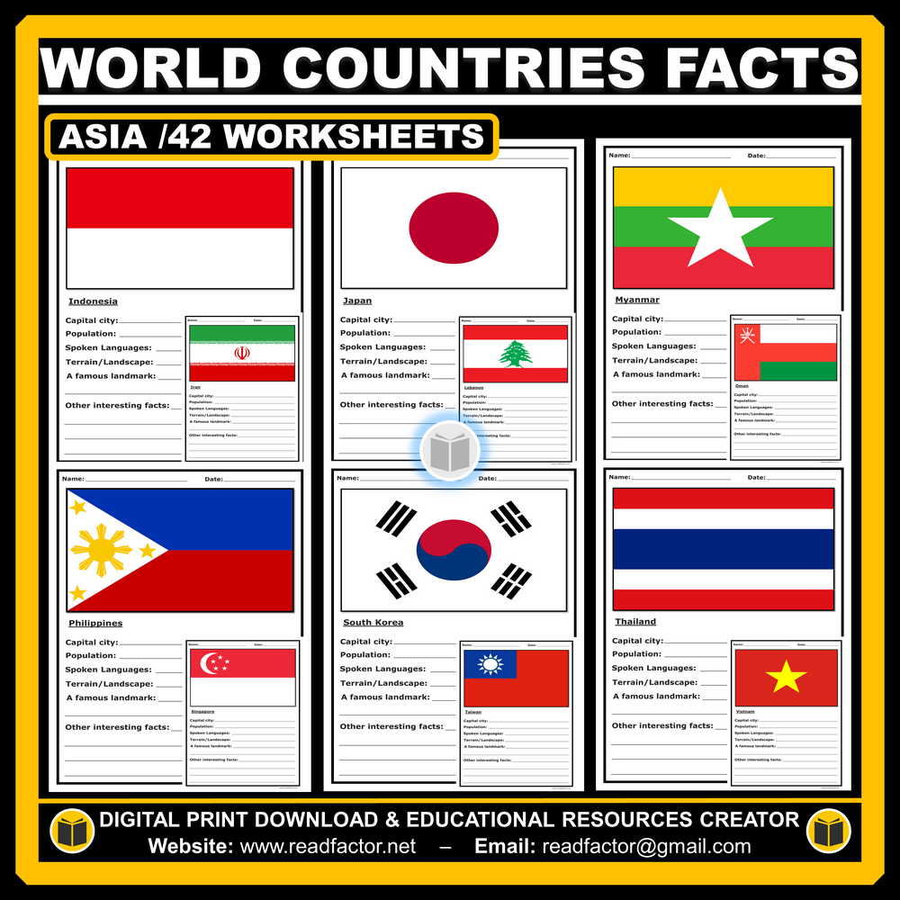 Help your students discover more about Asian Countries using this information and facts template. (Perfect for geography lessons).
