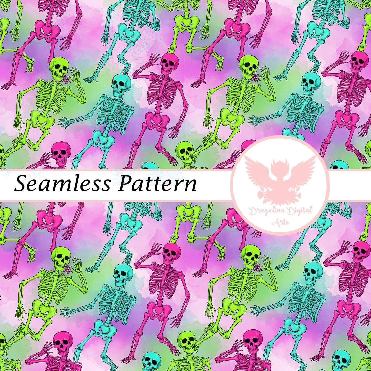 Colorful Skeleton Dance Seamless Pattern