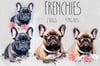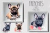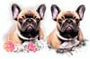 French Bulldog, Frenchies. 2 dogs with and without flowers. 4 PNGs. Mocks included