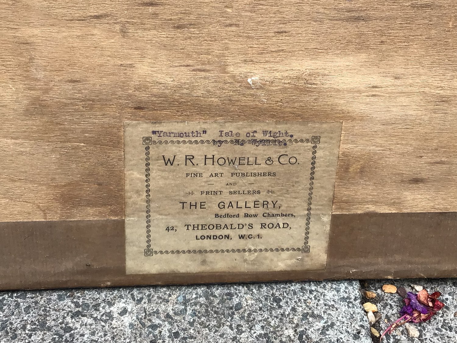 Charles William Wyllie original etching of the Yarmouth, Isle of Ight. Early 20c. Good condition. In original frame from W R Howell and Co, 42 Theobald St, London. UK postage free, fully tracked.