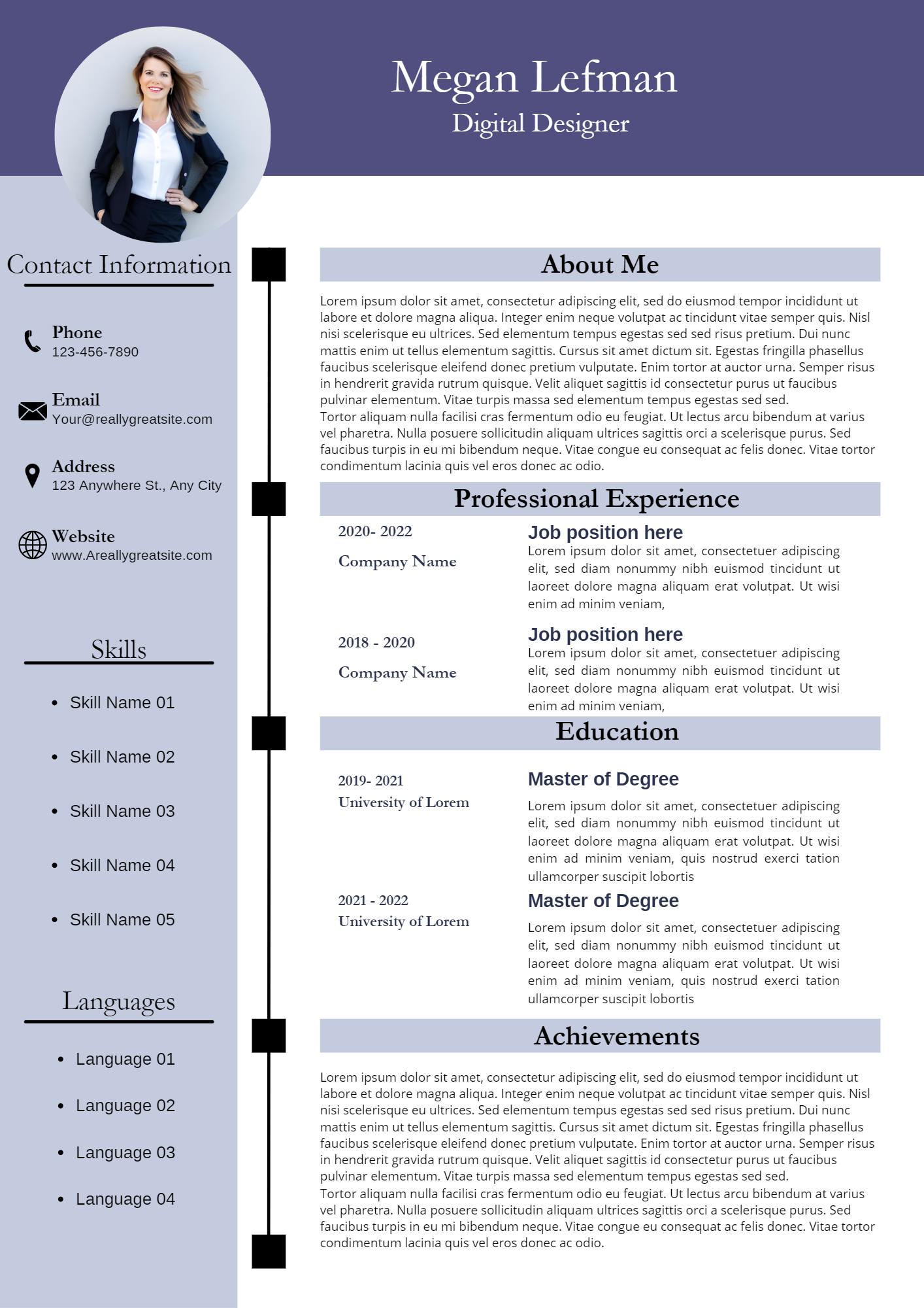 There are a total of 1 resume designs that are designed for you simply fill out the information and render the images.