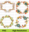 Autumn Floral Wreath Clipart, SVG & PNG (Digital Download)