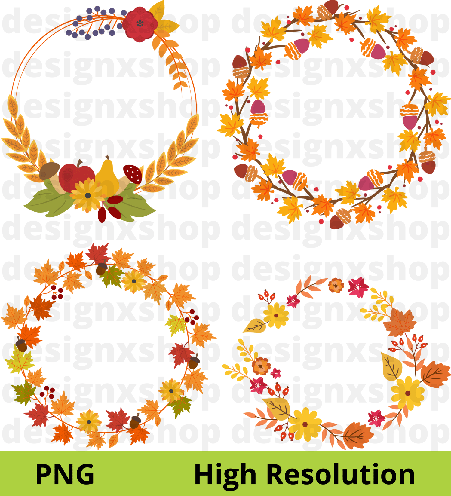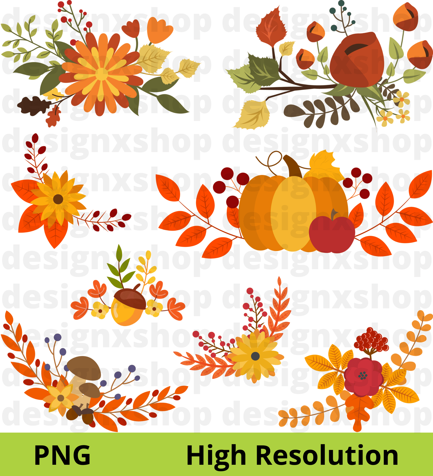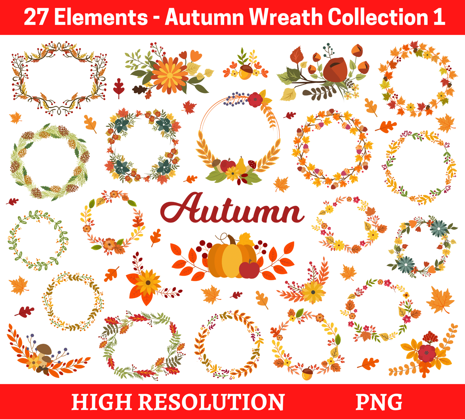 ๐๐ ๐๐ฅ๐๐ฆ๐๐ง๐ญ๐ฌ - ๐๐ฎ๐ญ๐ฎ๐ฆ๐ง ๐๐ซ๐๐๐ญ๐ก๐ฌ ๐๐จ๐ฅ๐ฅ๐๐๐ญ๐ข๐จ๐ง ๐๐๐ญ ๐, hand drawn hi-res digital CLIP ART (with transparent background).