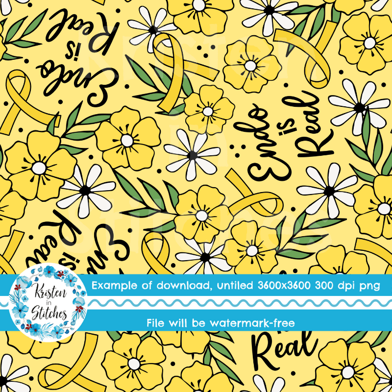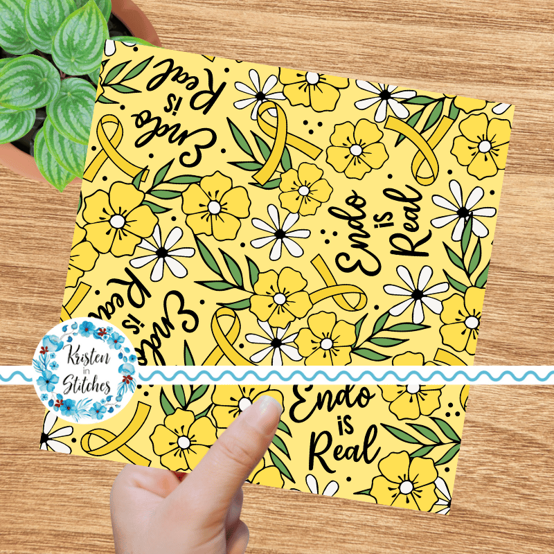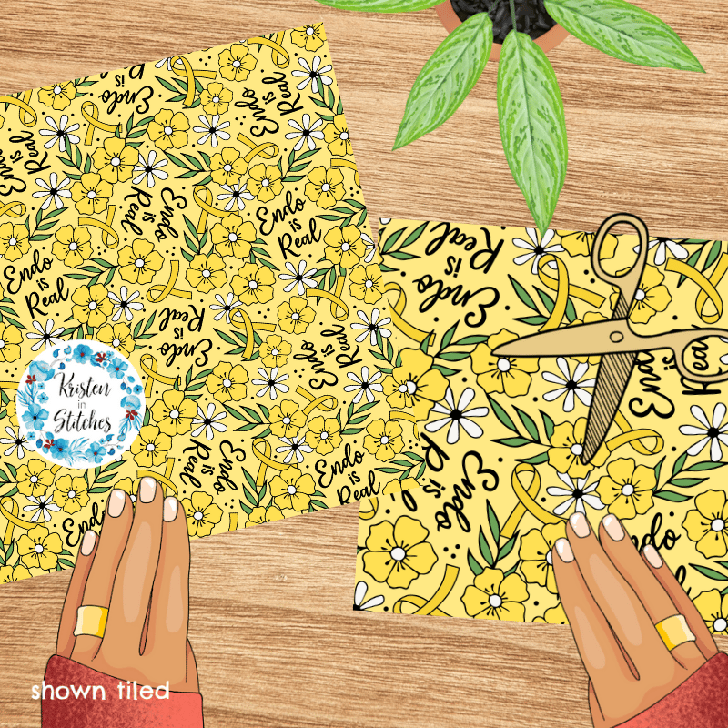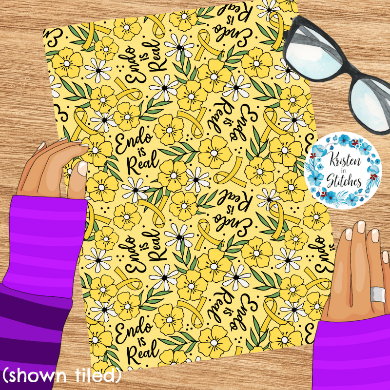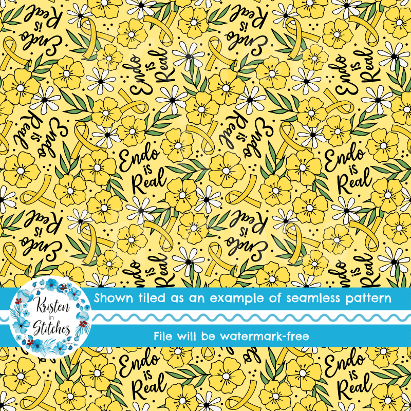Endo is Real Yellow Ribbon Floral Seamless Pattern, Endometriosis Awareness