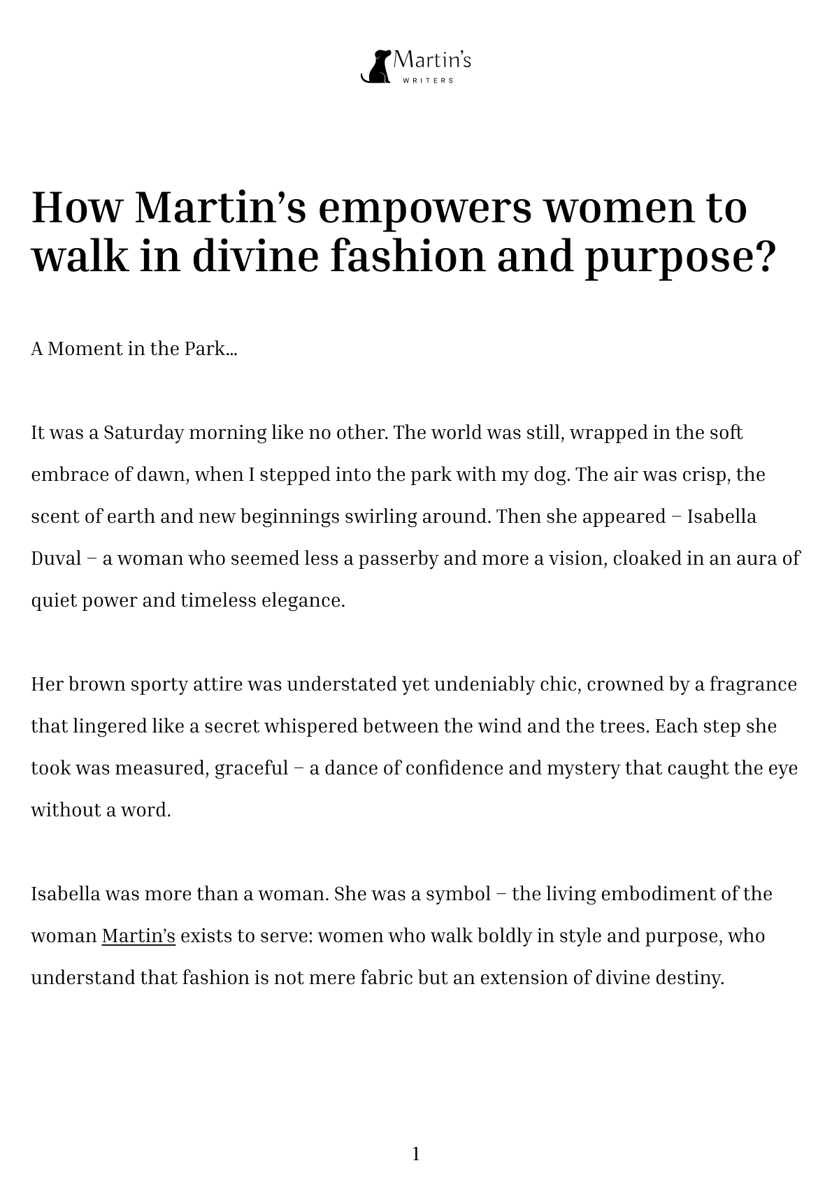 Martin’s is more than a brand; it’s a calling. We design for women like Isabella – women who live on the edge of excellence and spirituality, who lead with both grace and grit.