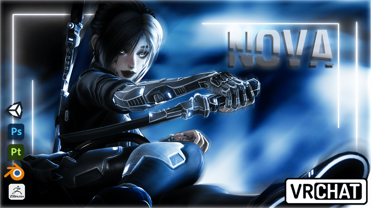 Nova is a badass cyberpunk inspired avatar, with multiple in-depth weapon systems, extreme amounts of color customization, and a highly detailed character design made with proper game-ready optimization in mind.