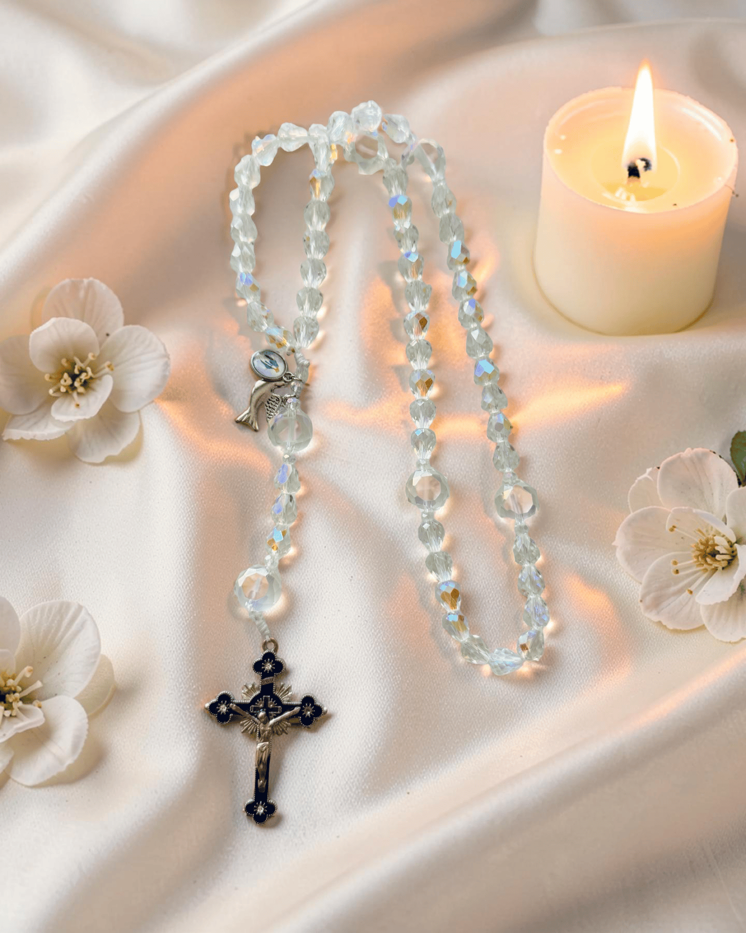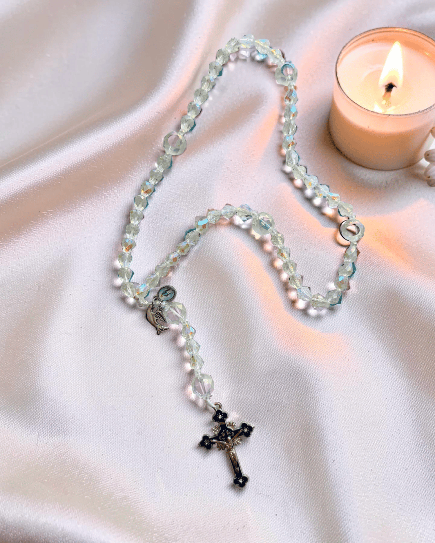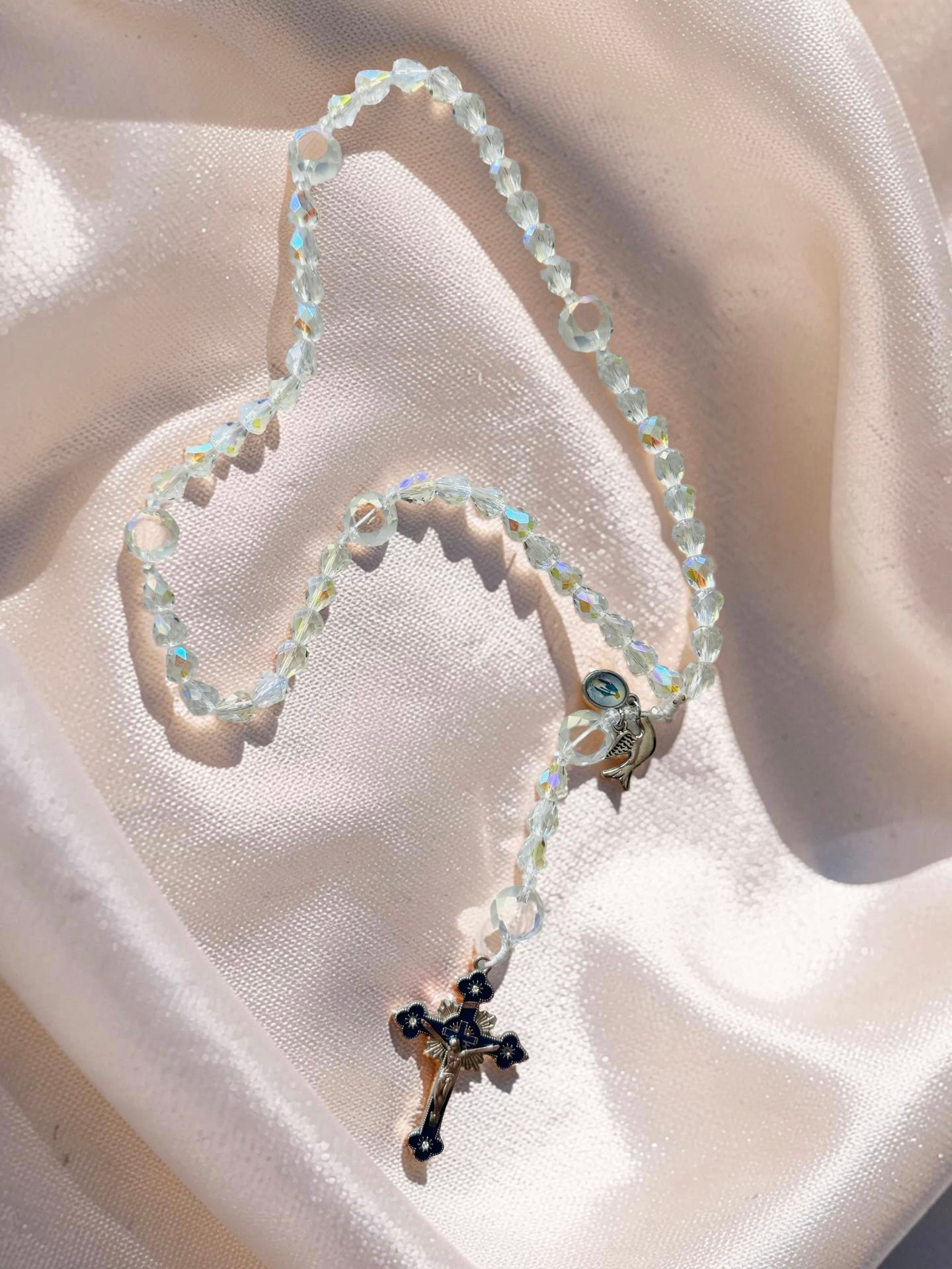 - Larger faceted crystal Our Father beads for easy prayer counting