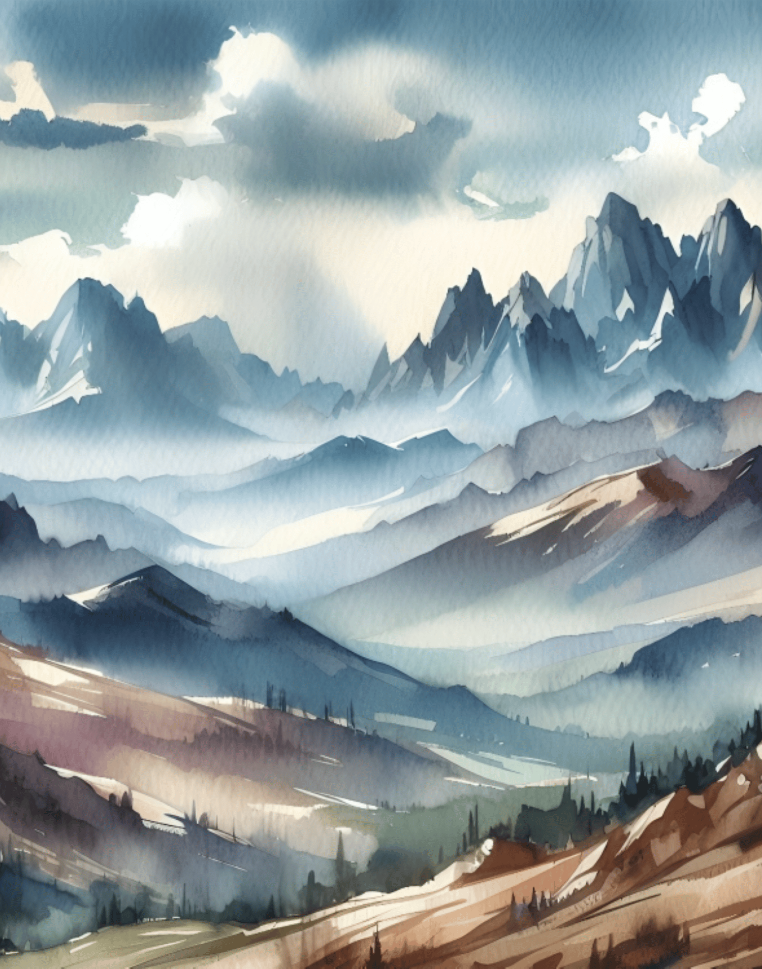 Mountain Landscape, Mountain Wall Art, Vintage Landscape, Nostalgic Nature, Cool Nature, Forest, Rustic natural Landscape, Painting.