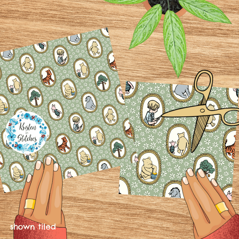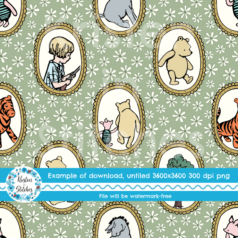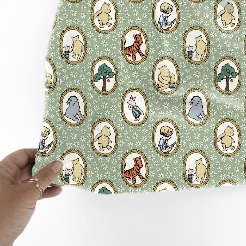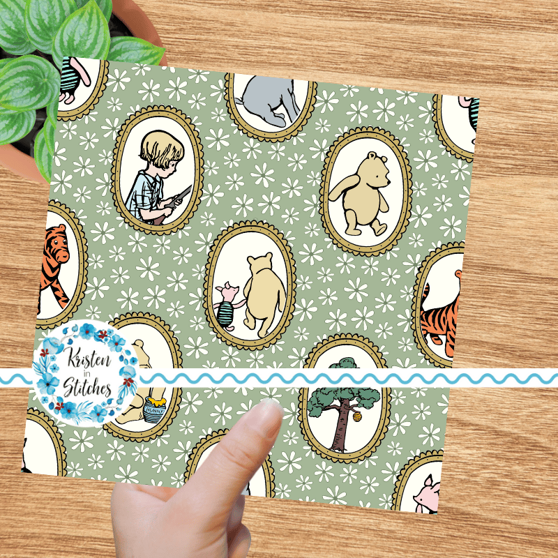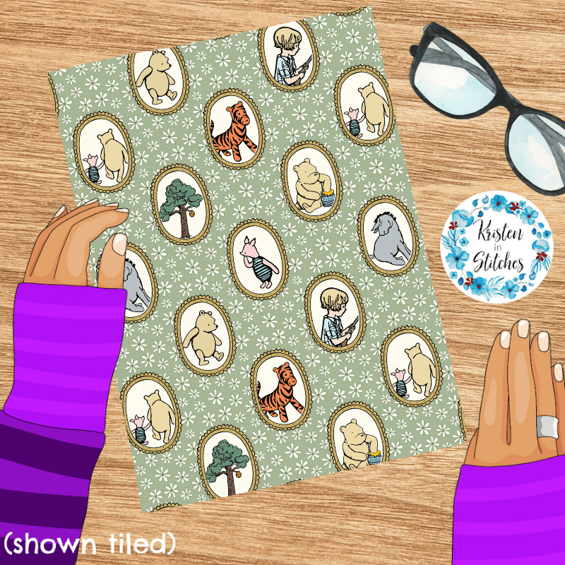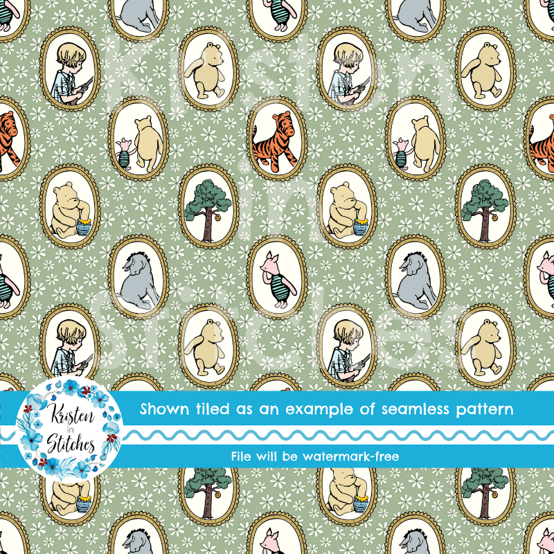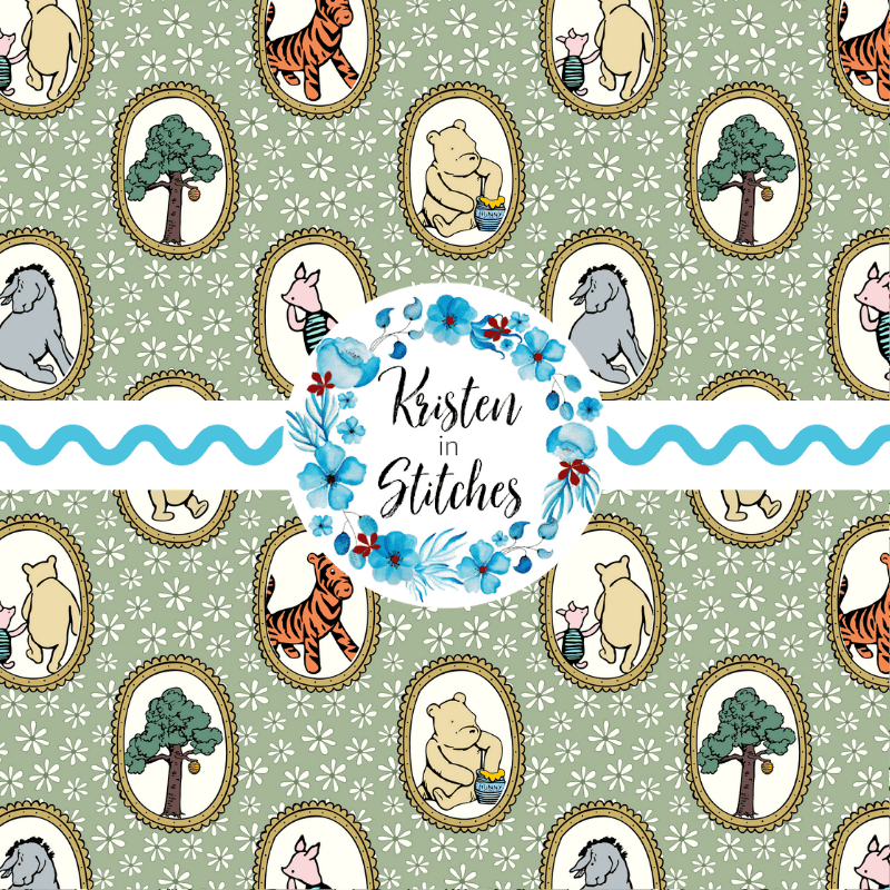 Classic Winnie the Pooh Storybook Friends Nursery Frames Seamless Pattern Sage Green