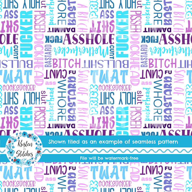 Swear Word Cloud, Sweary Rude Sayings Seamless Pattern